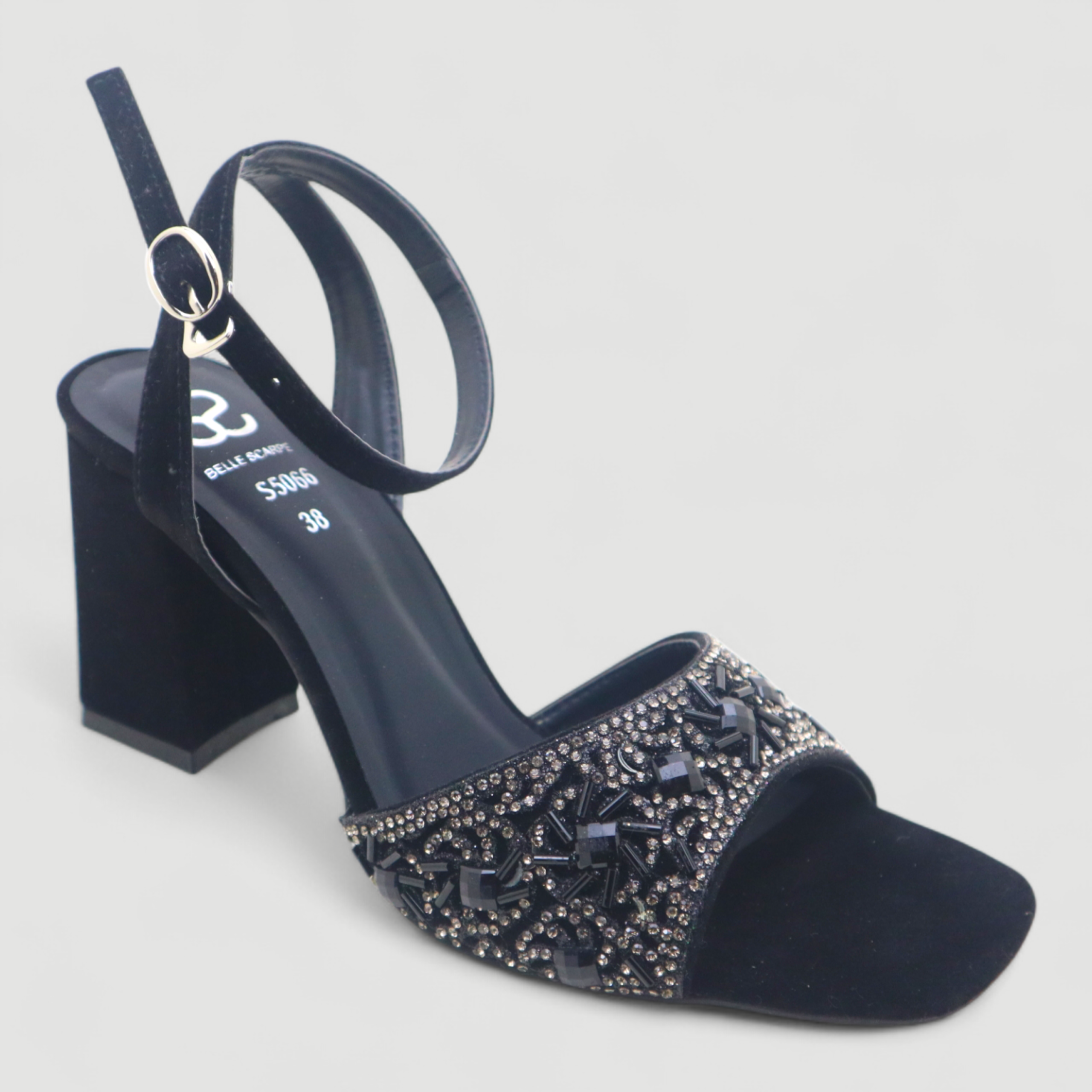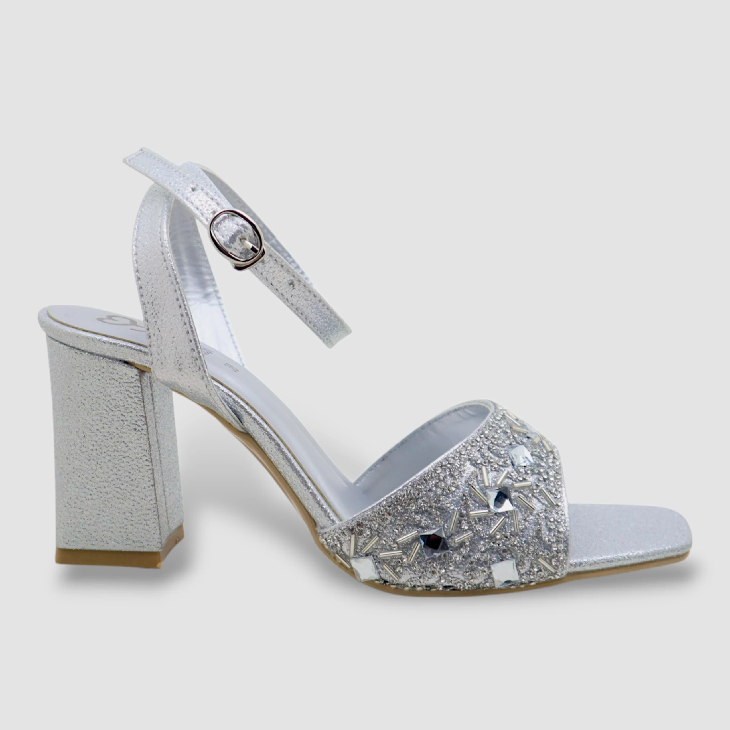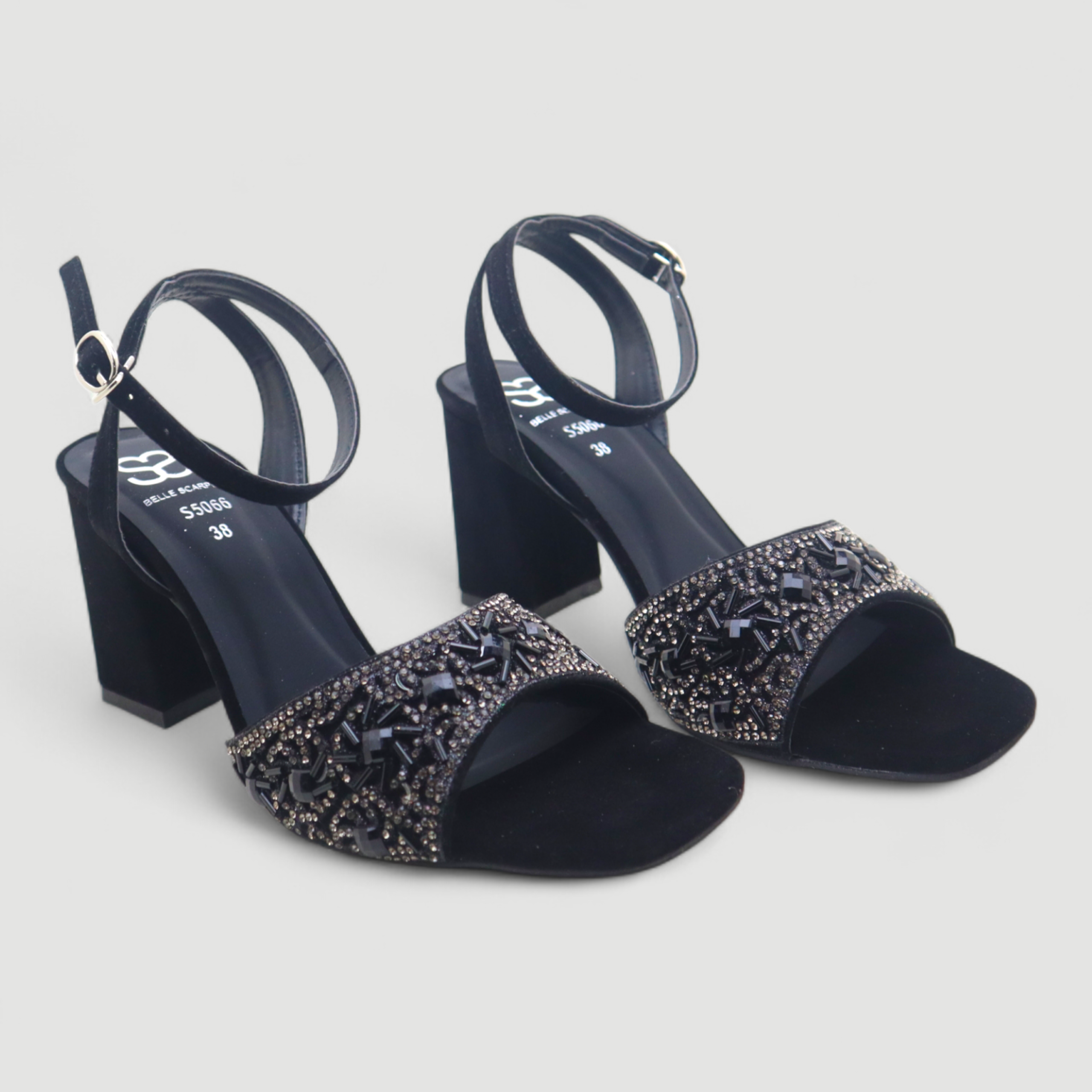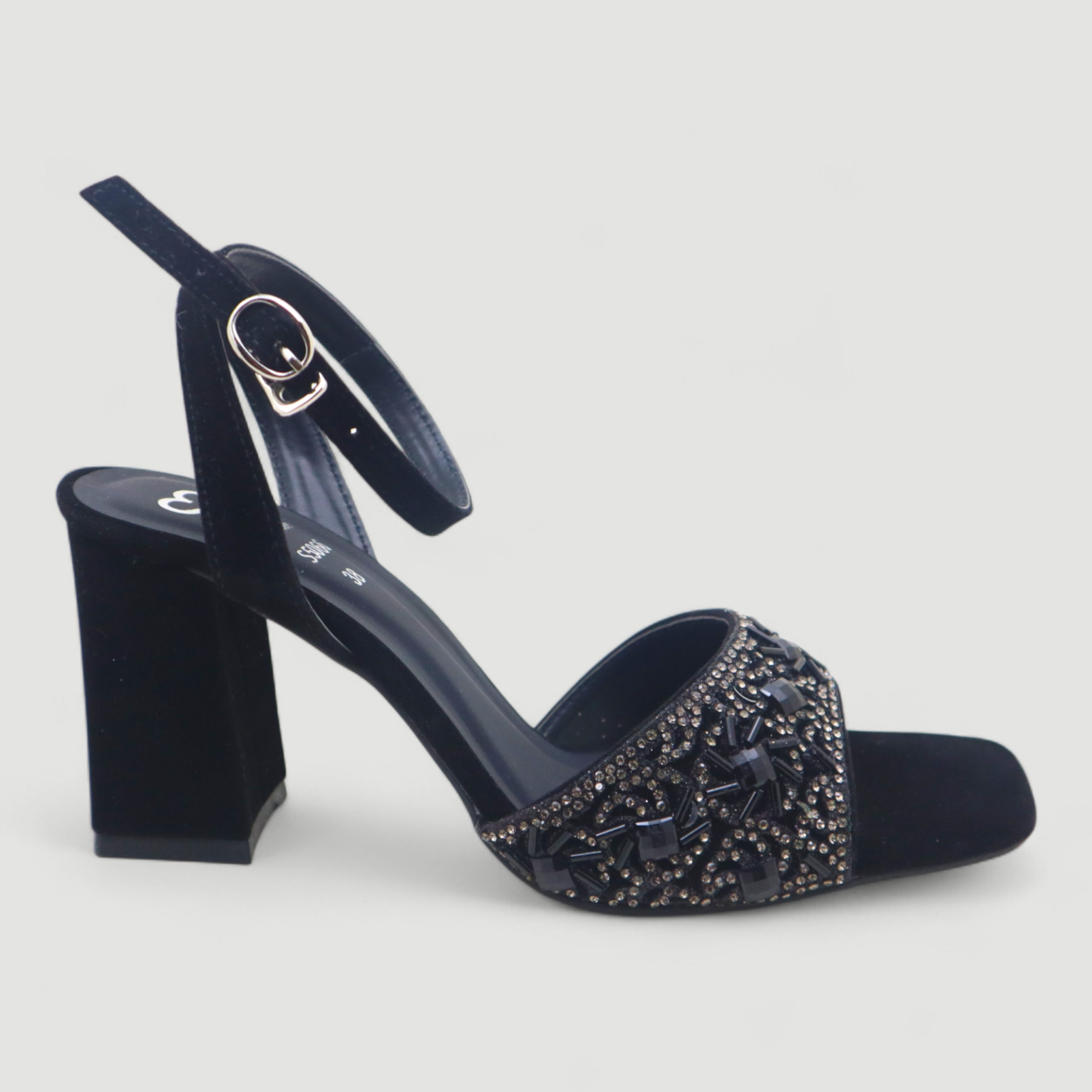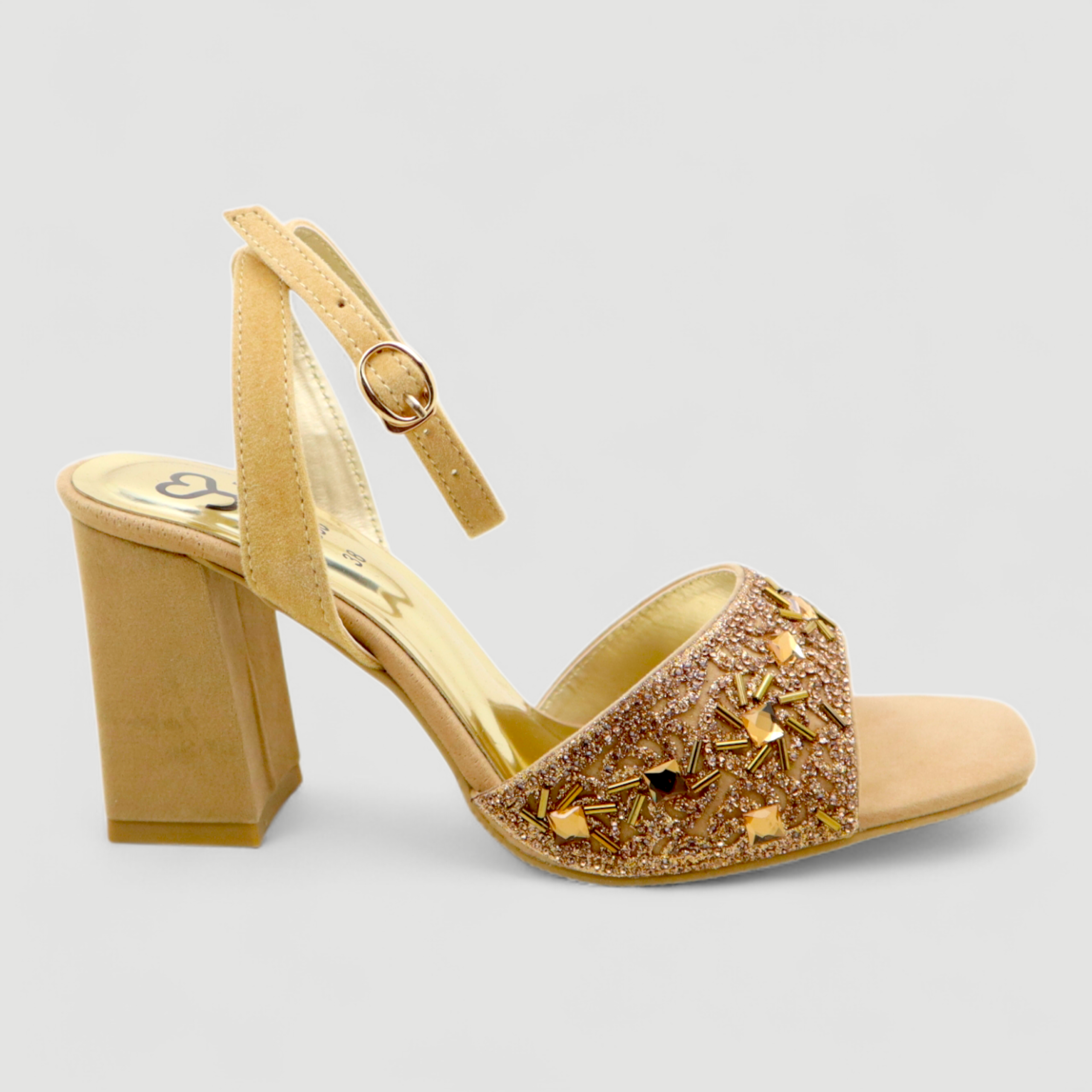Elevate your style with these stunning block heel sandals designed for elegance and comfort. Featuring a beautifully embellished front strap with crystals and rhinestones, these heels add a luxurious sparkle to any outfit.