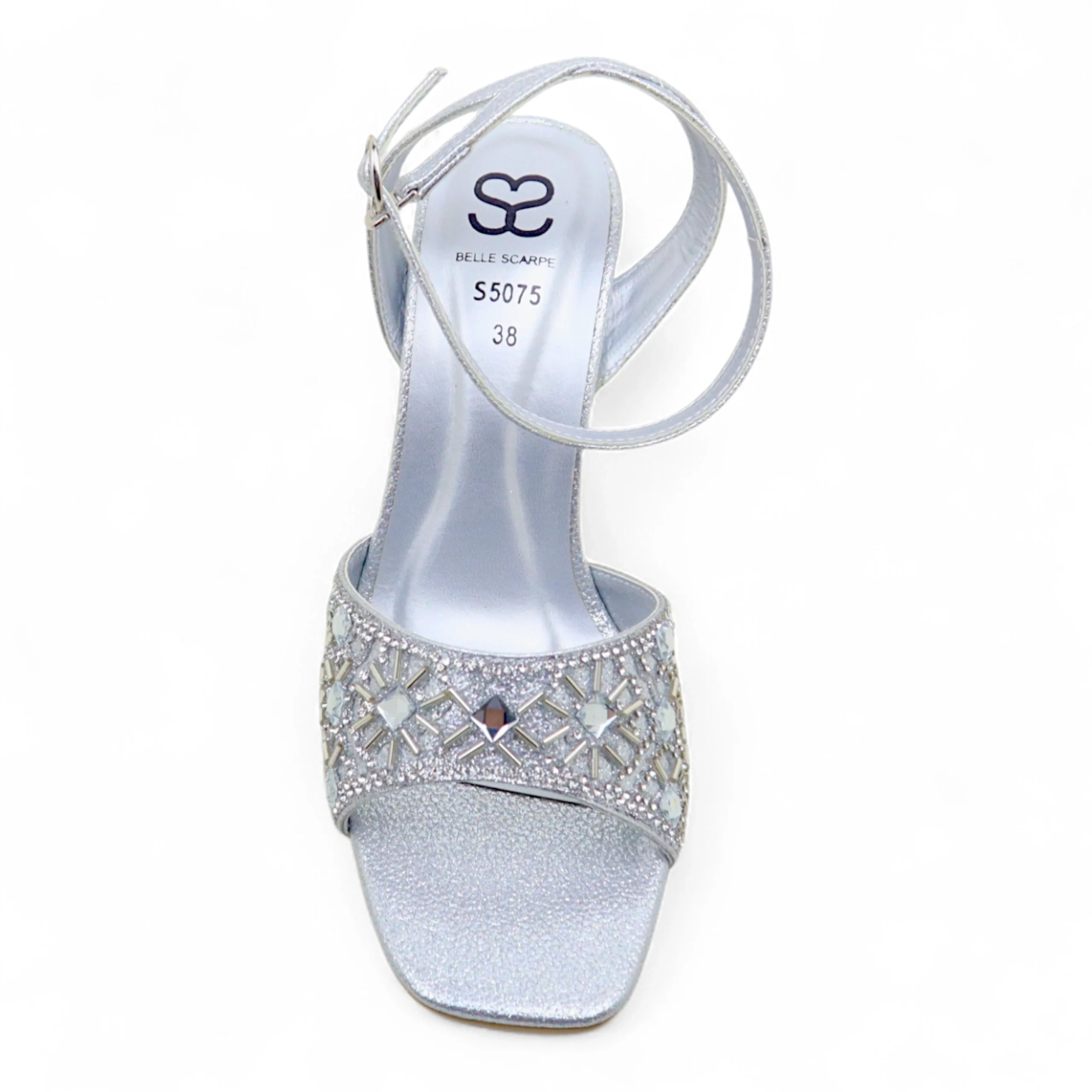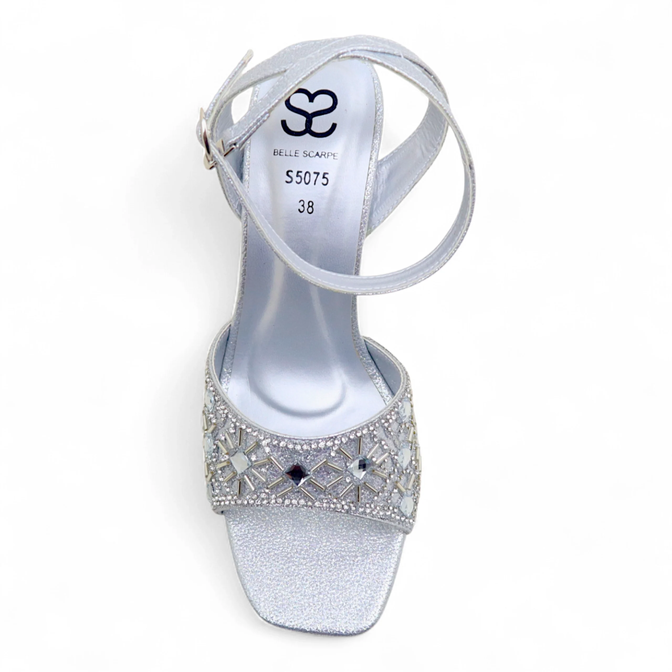 - Rhinestone and crystal embellished front strap
