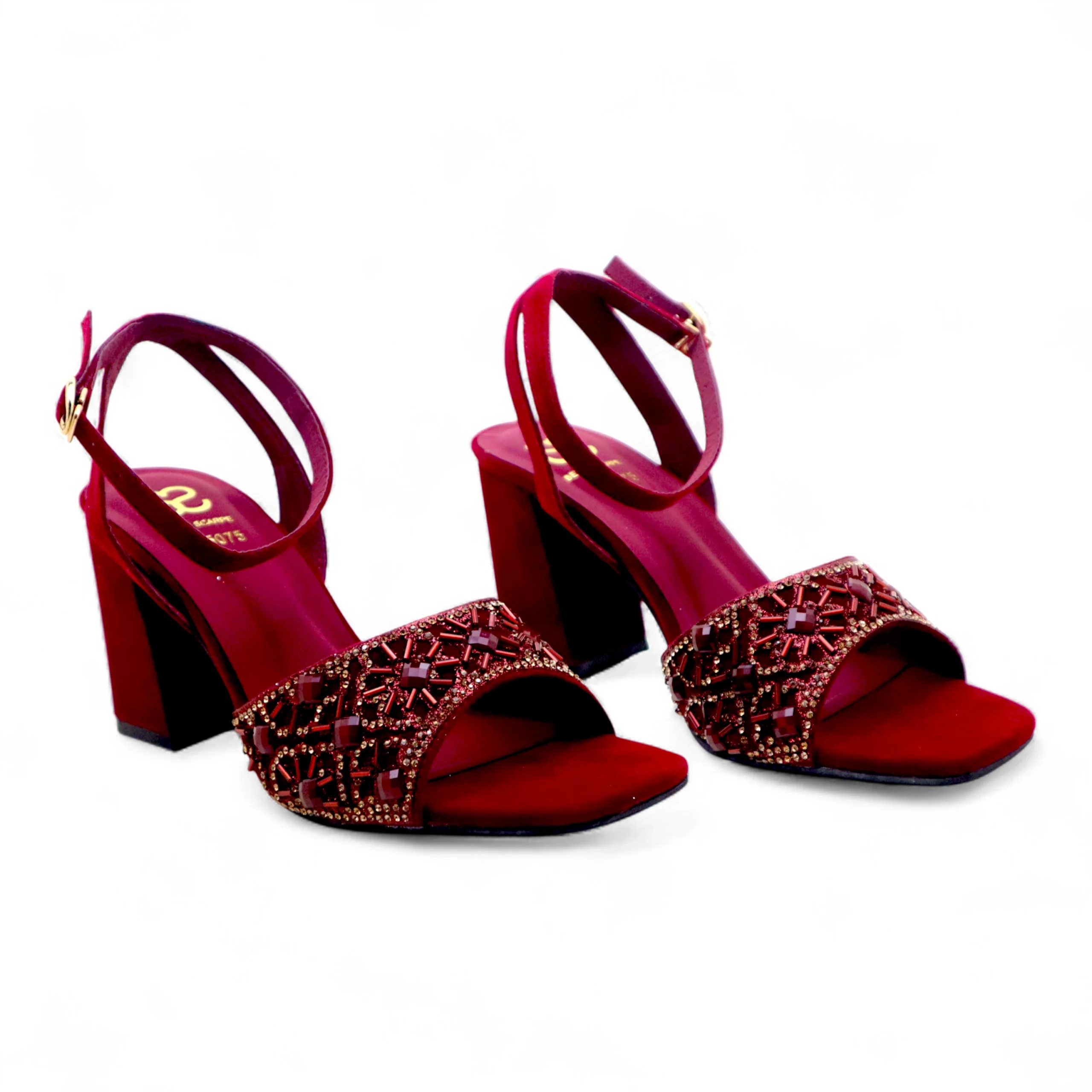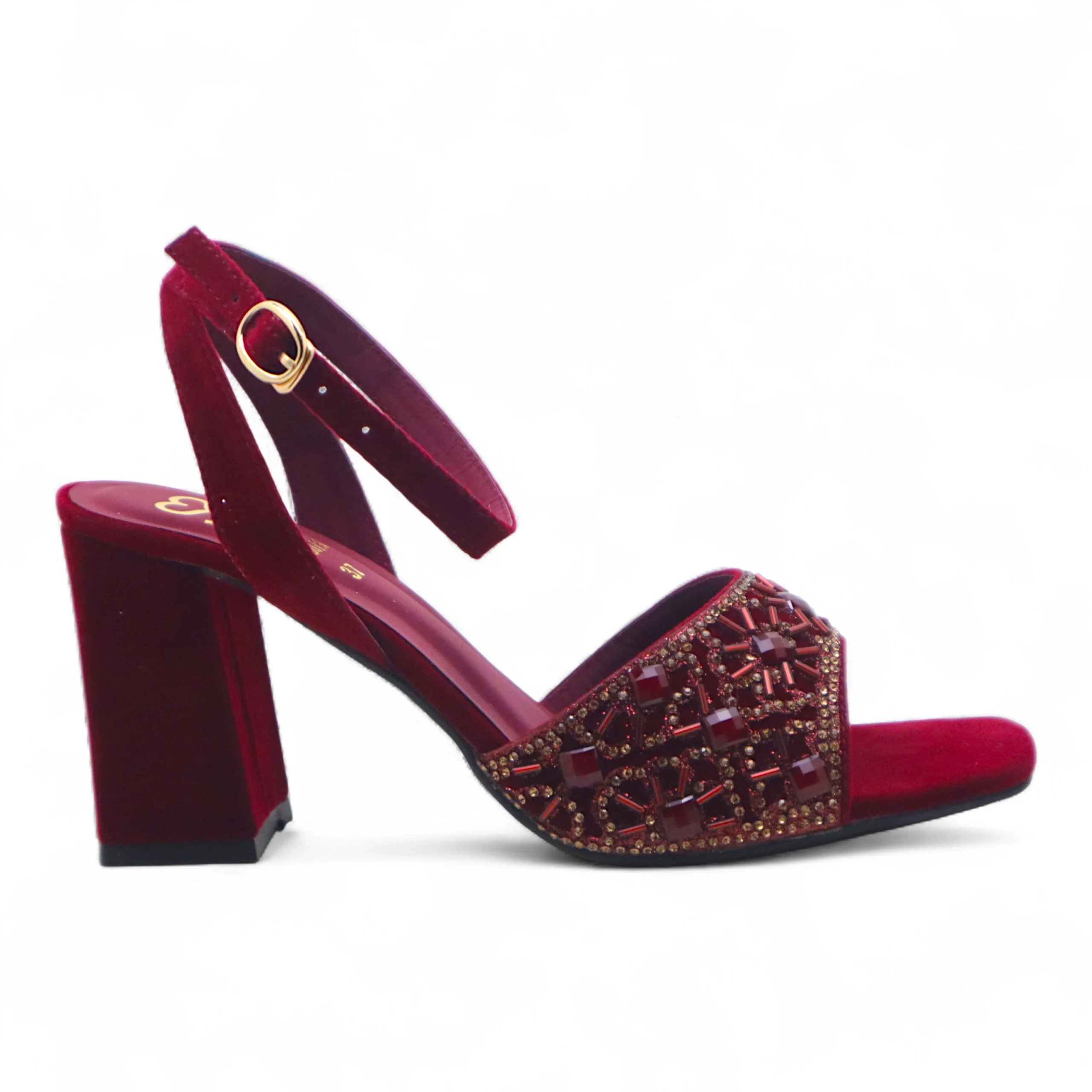 The sturdy block heel provides excellent support and comfort, while the adjustable ankle strap ensures a secure and personalized fit. Perfect for weddings, parties, and festive events, these sandals combine sophistication with all-day wearability.