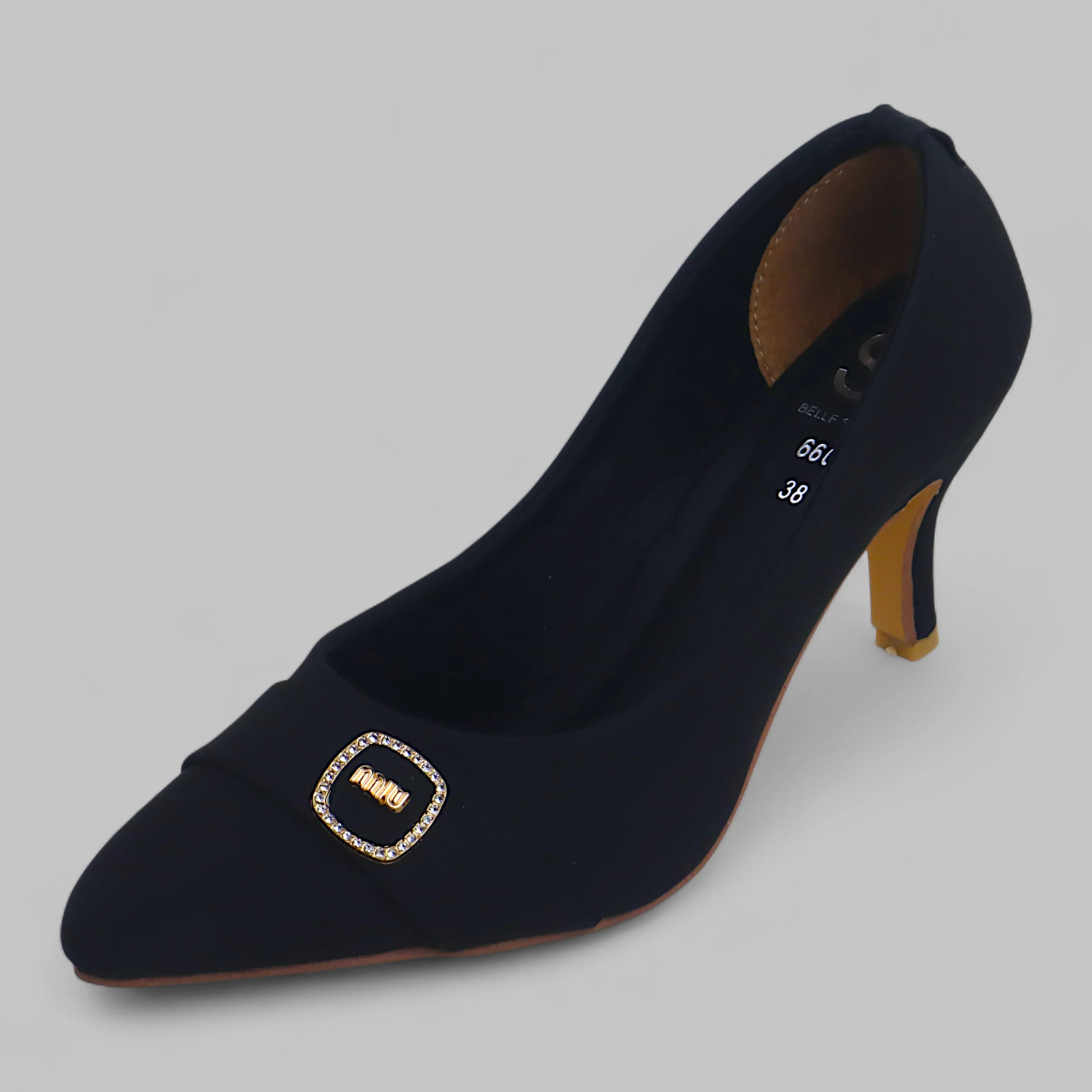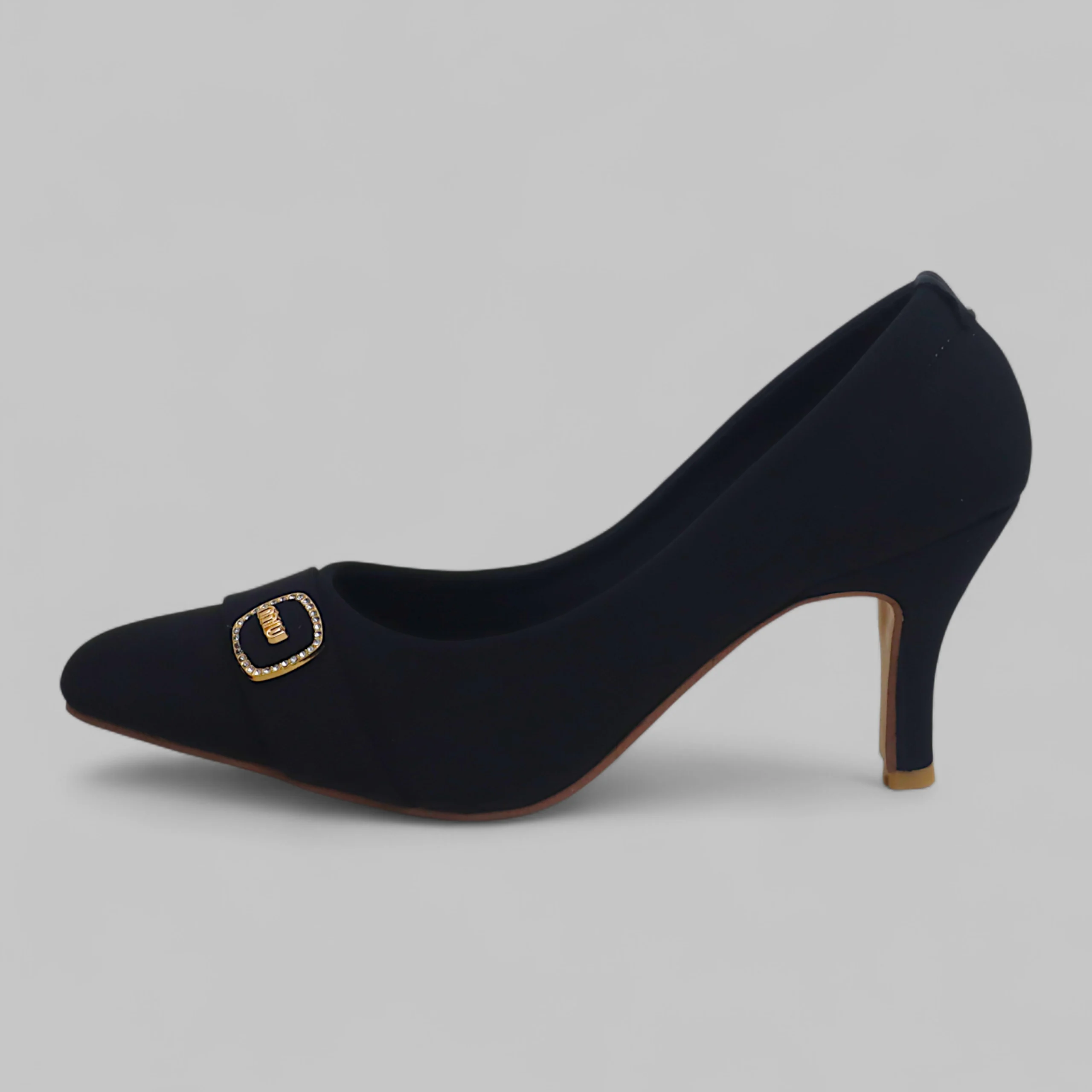 sophistication. Crafted in classic black, this elegant heel features a refined buckle detail on the