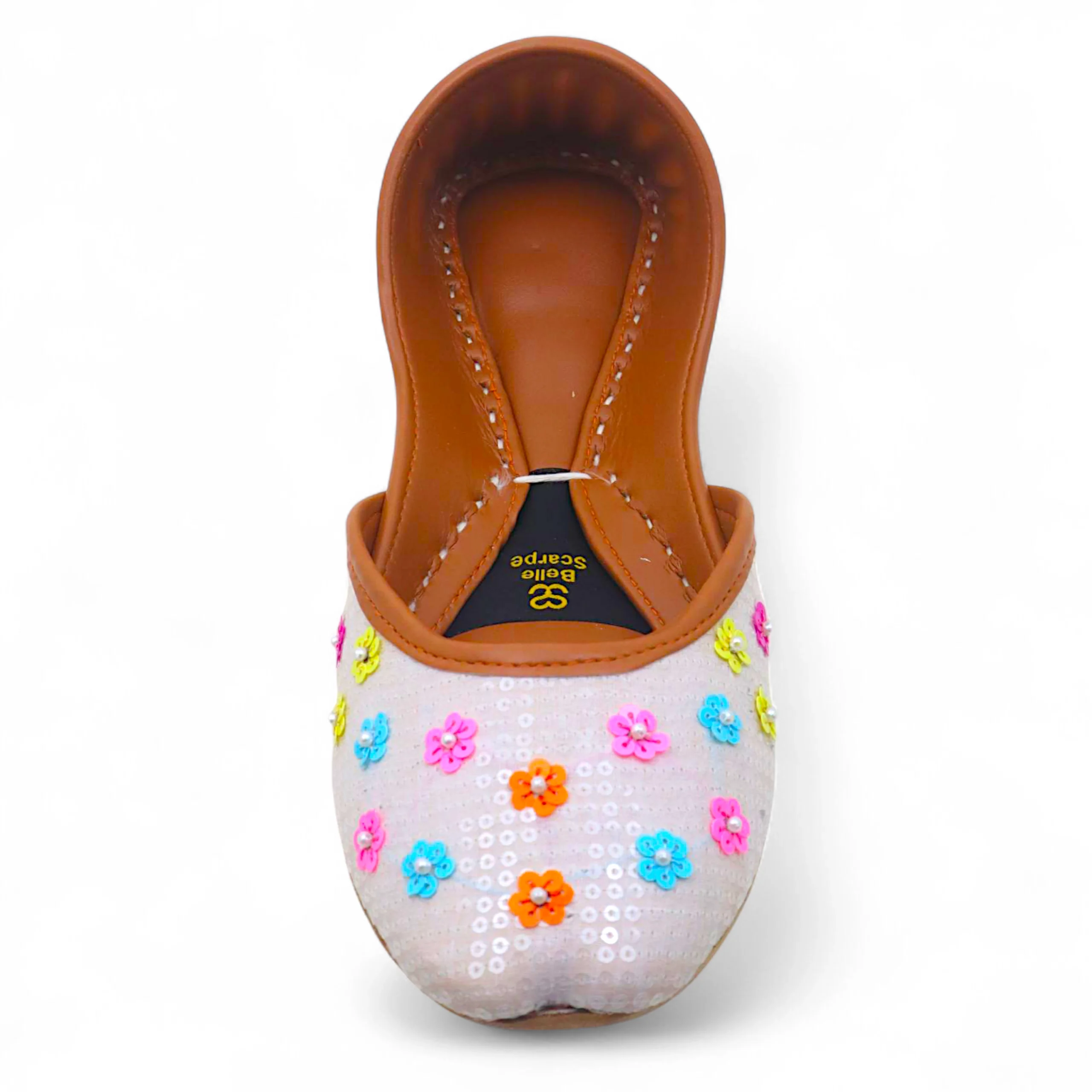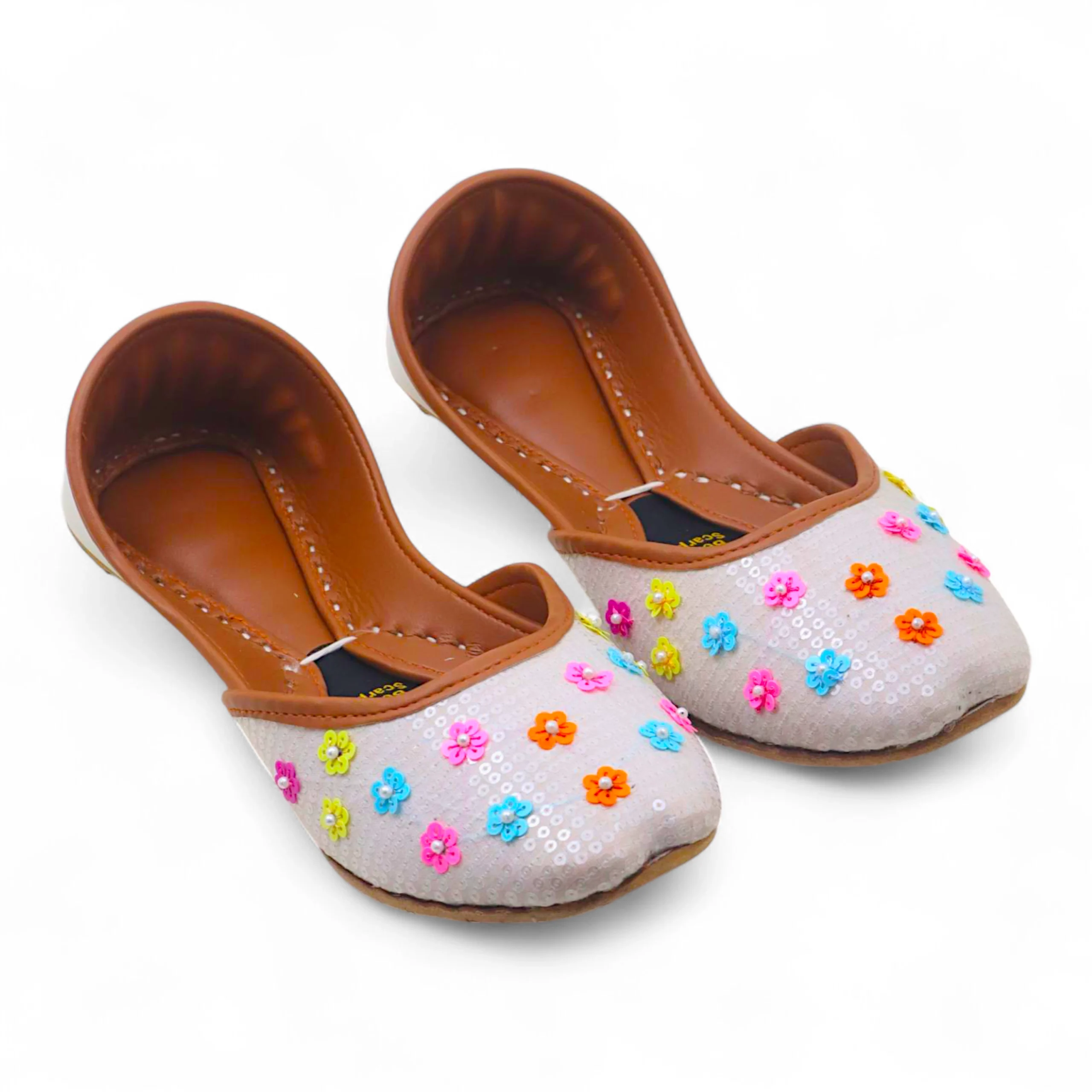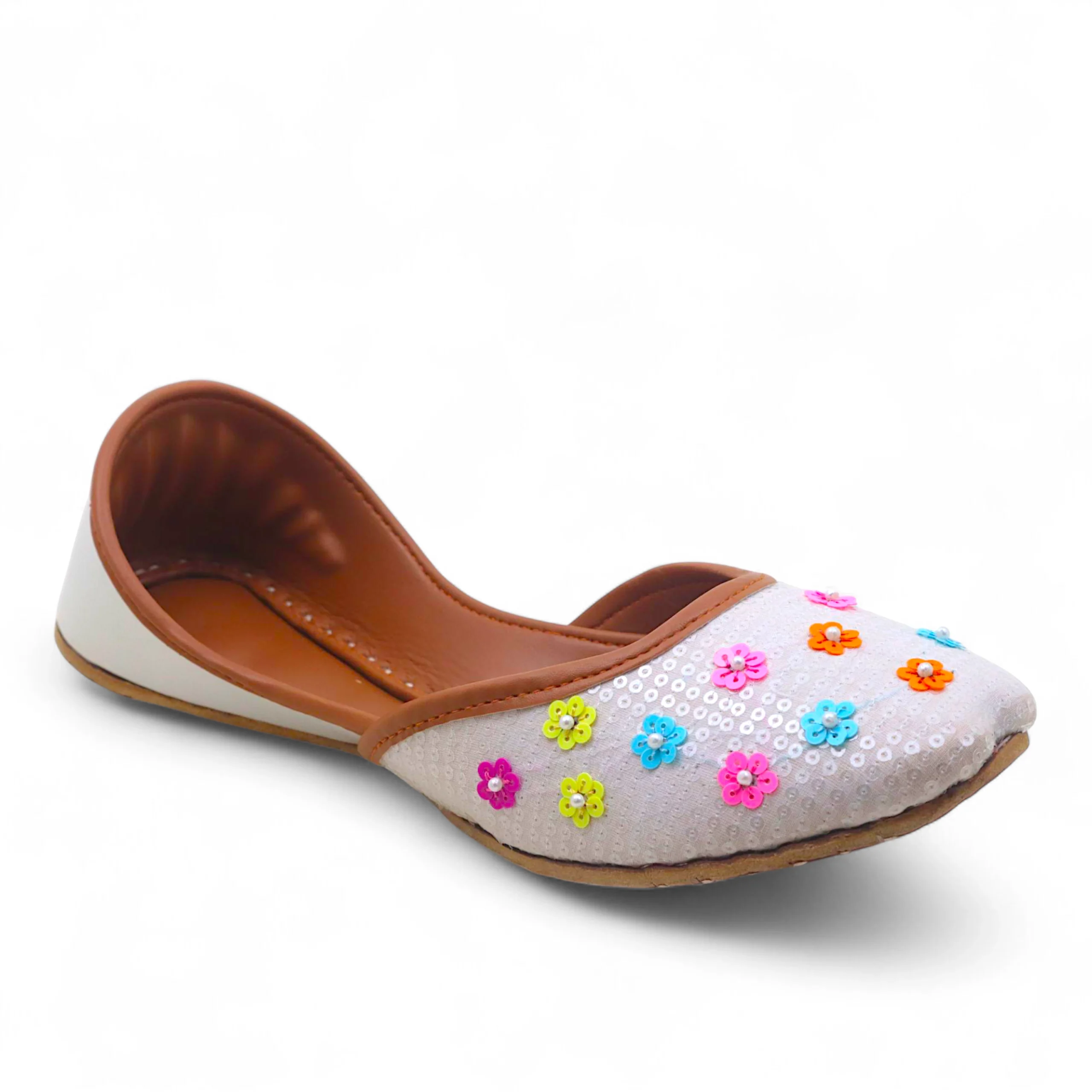 Introducing the Bloom Kussa, a delightful flat that blends traditional charm with playful color. The crisp white base is adorned with delicate, small flowers in vibrant shades, creating a cheerful and eye-catching design. Lightweight and comfortable, the Bloom Kussa adds a touch of whimsy to any outfit, making it perfect for casual days or festive occasions. Best served with • Casual Chic: Pairs effortlessly with jeans, skirts, or summer dresses. • Festive & Traditional Wear: Complements ethnic outfits with a handcrafted, lively touch. • Everyday Elegance: Ideal for relaxed outings while staying stylish and comfortable.