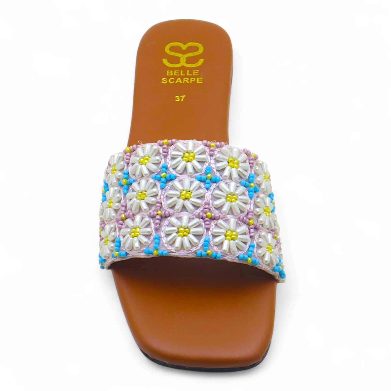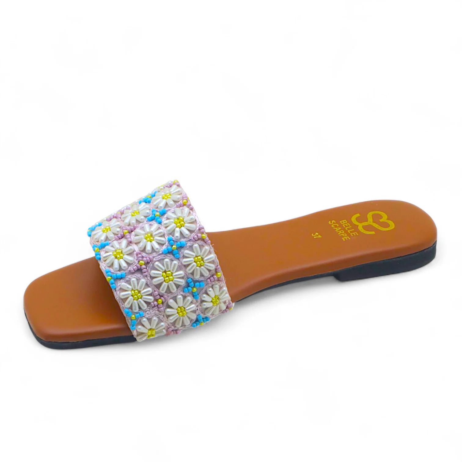 Step into delicate artistry with the Blossom Charm—a handcrafted flat that effortlessly blends traditional craftsmanship with modern elegance. Set on a soft light pink base, this shoe is a true testament to meticulous hand-embellishment.