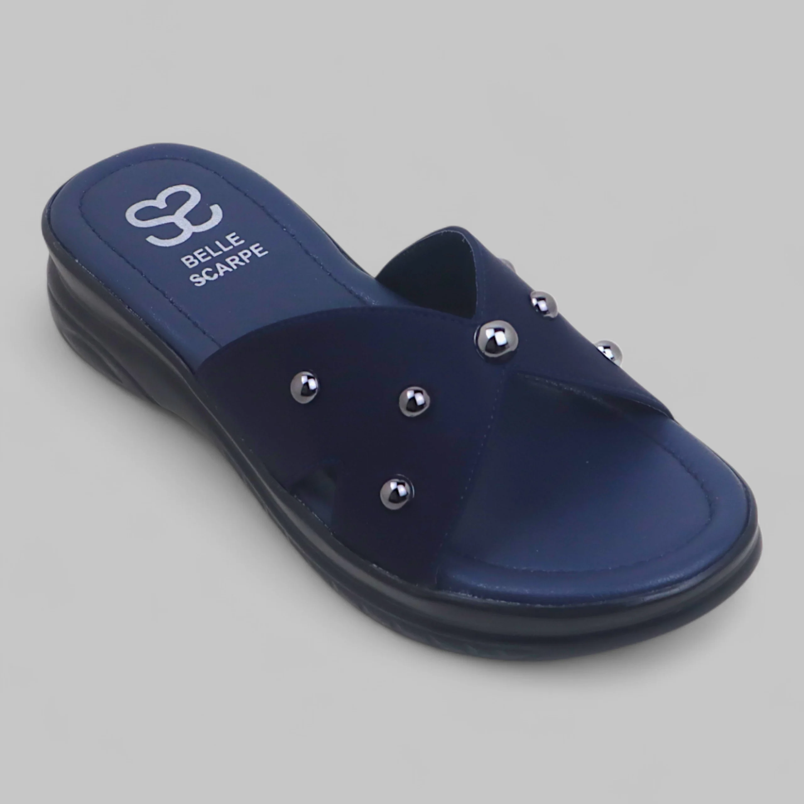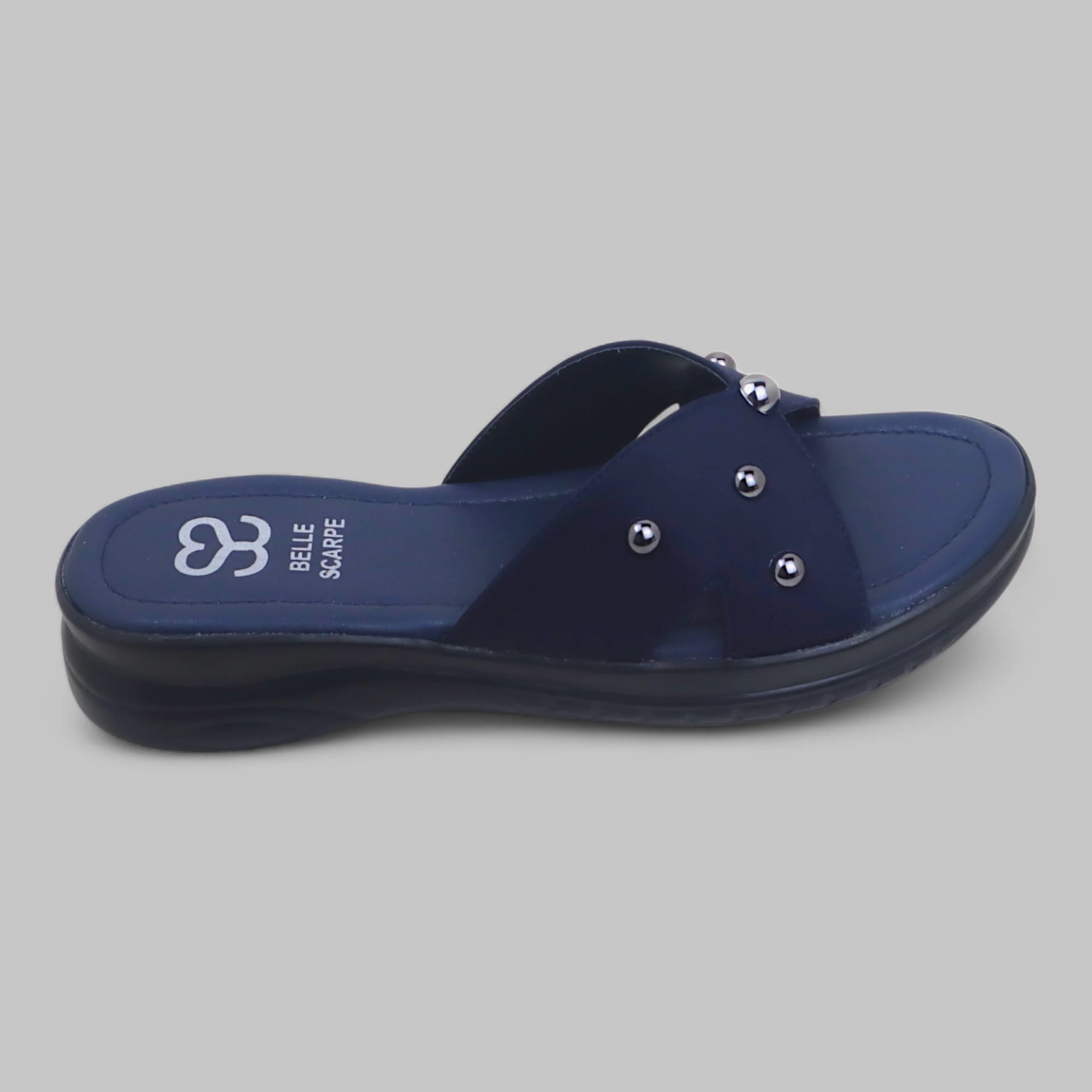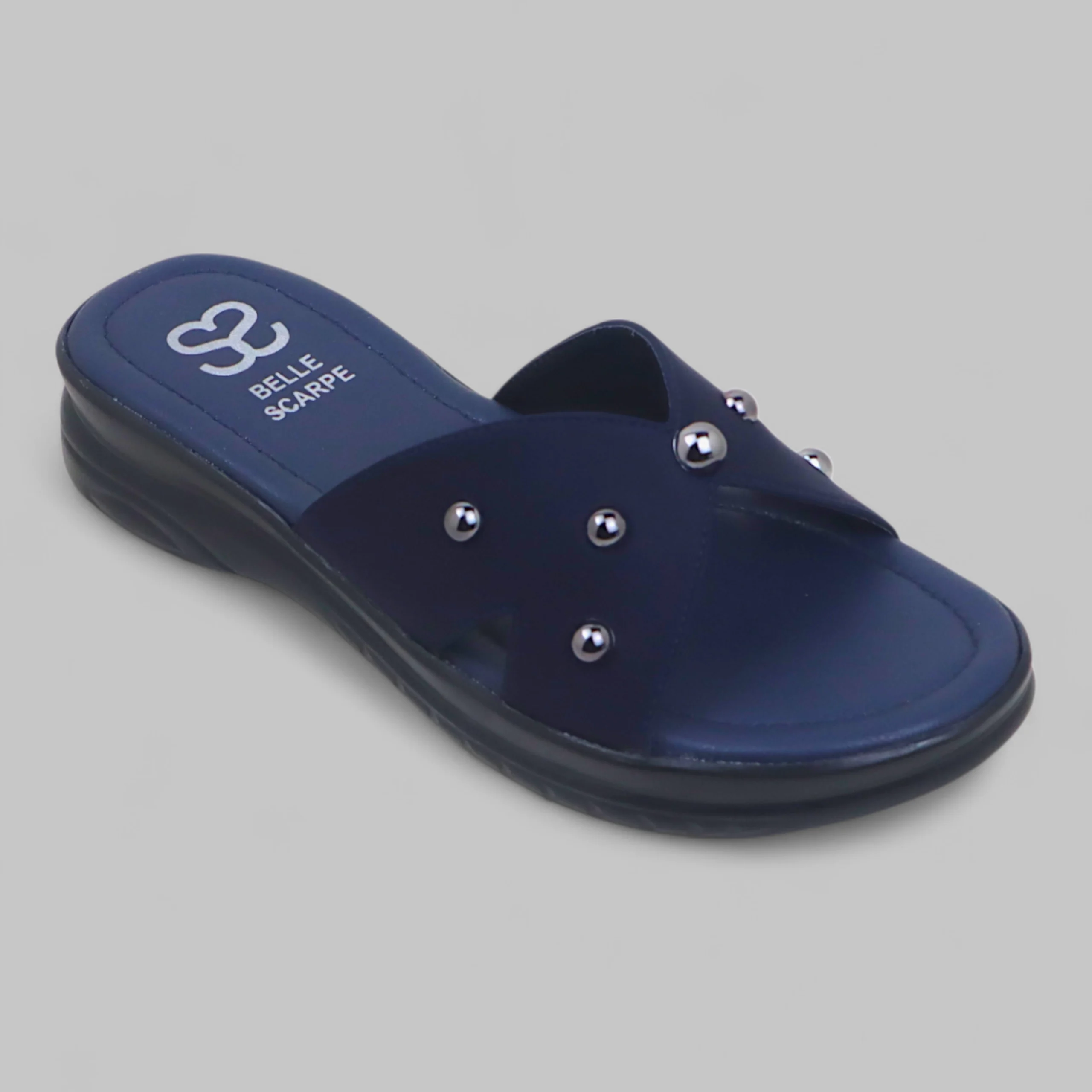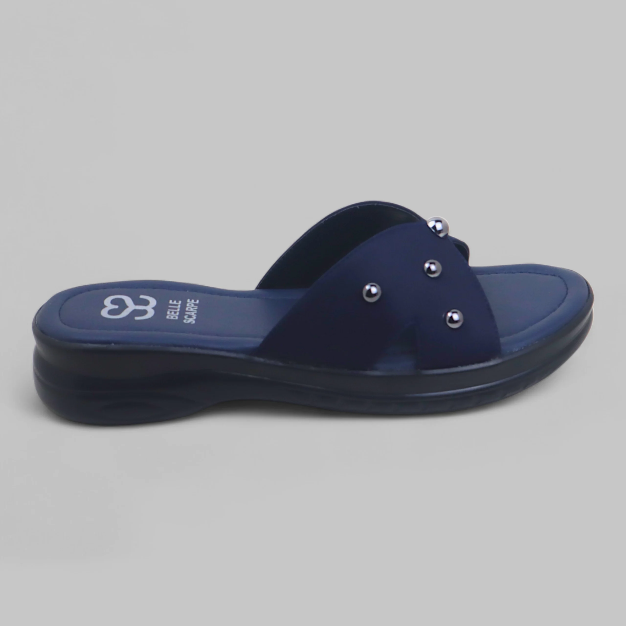 Introducing the Blue Pearl Slider, a 1.5-inch flat designed for effortless comfort with a touch of elegance. Crafted in a rich blue hue, this slider features a beautifully detailed upper adorned with lustrous pearls that add soft sophistication and charm. The low profile makes it perfect for all-day wear, while the refined embellishment keeps it polished and stylish.