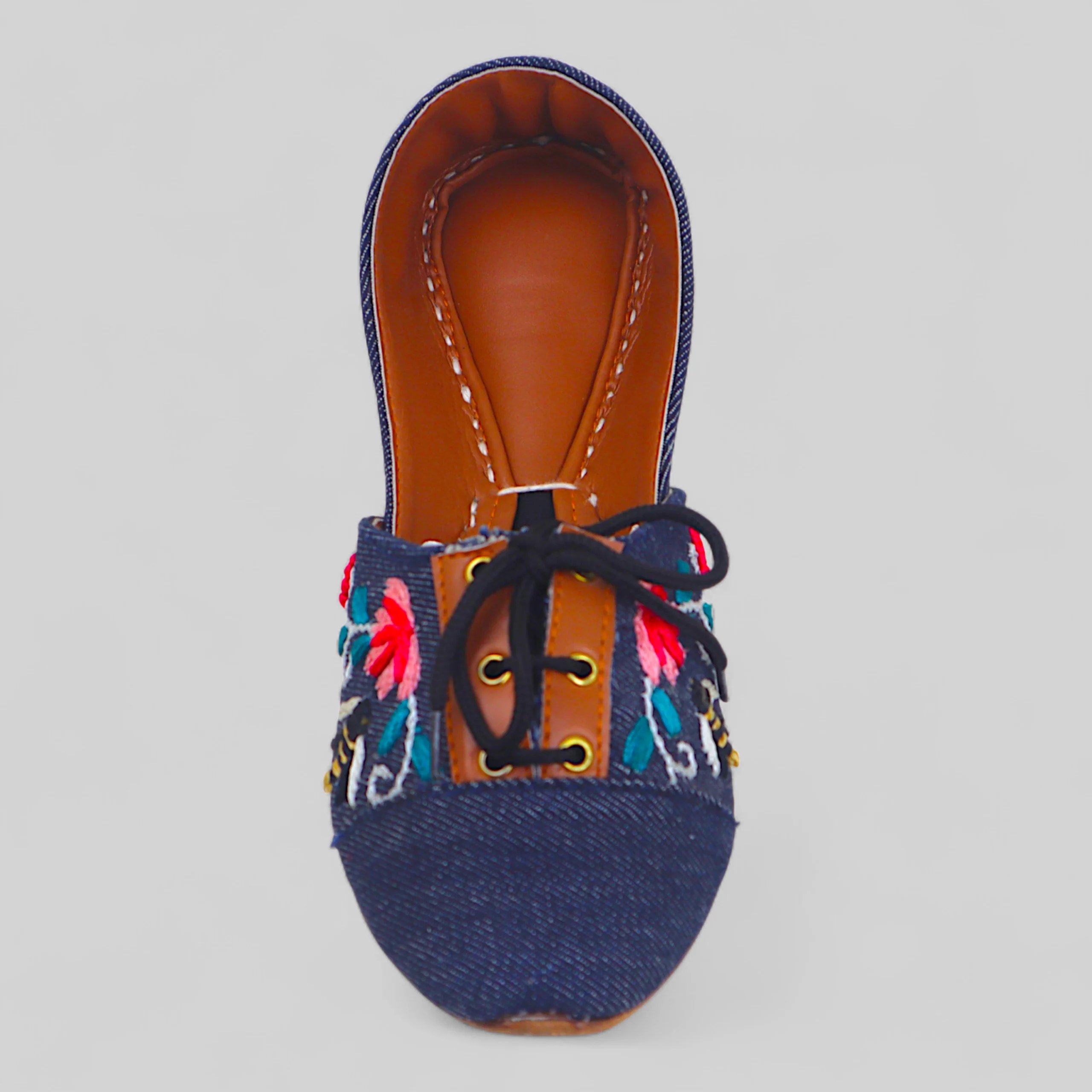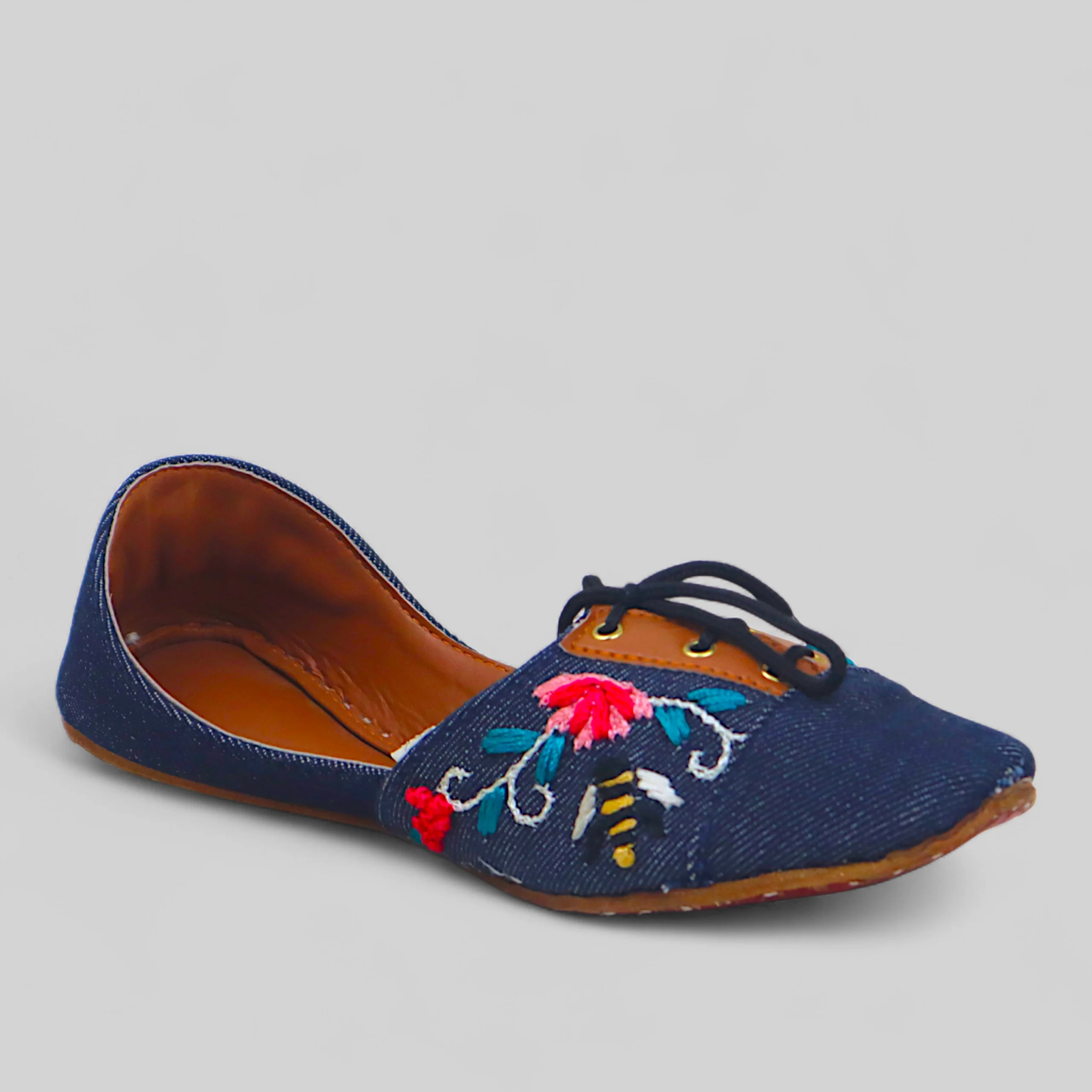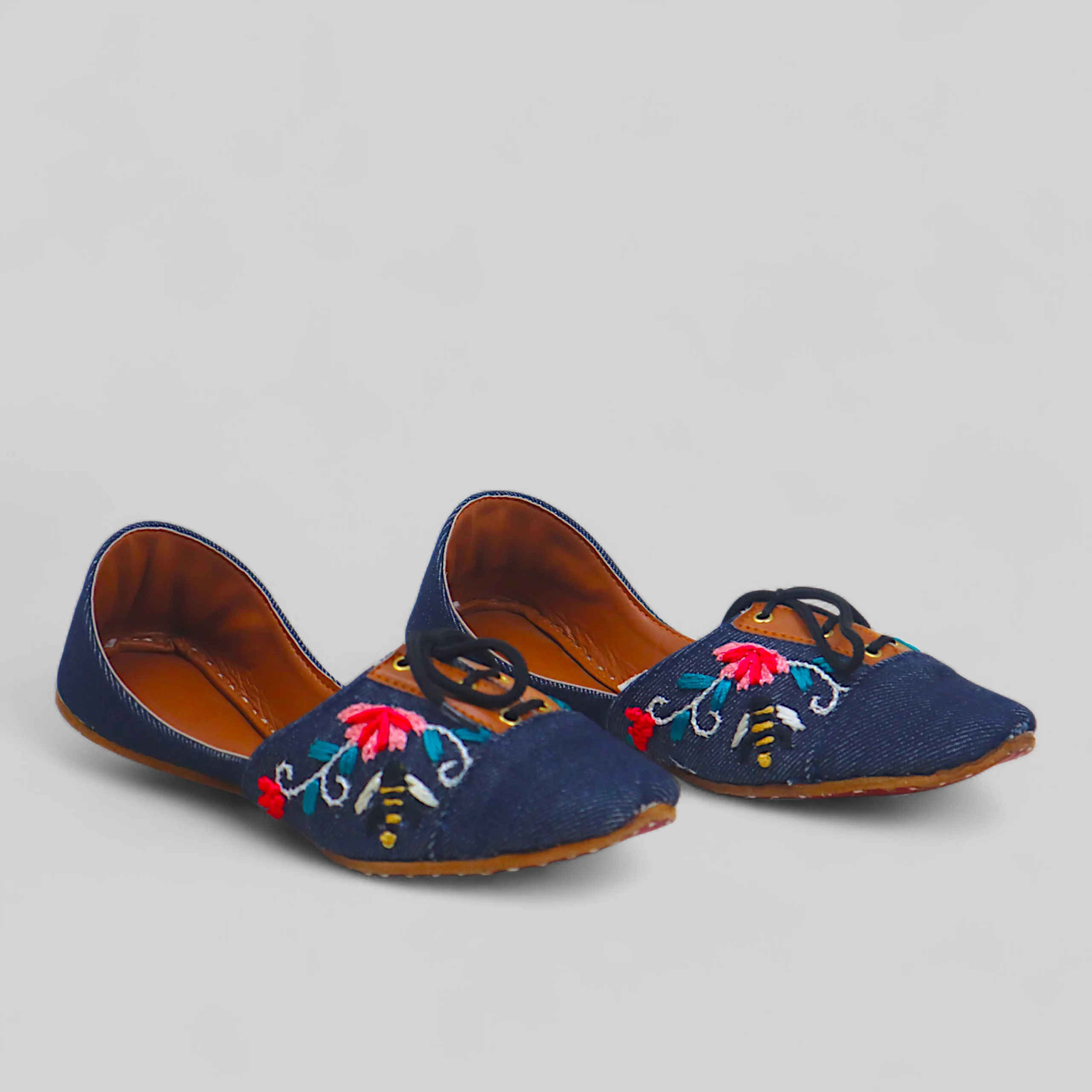 Introducing the Denim Bloom, a stylish twist on the classic kussa — blending traditional charm with a modern, youthful edge. Crafted from soft blue denim, this handcrafted pair stands out with its delicately embroidered floral motifs placed gracefully along the sides, adding a fresh and vibrant touch to the casual fabric. What truly sets this design apart is its unique lace-up front, inspired by sneaker aesthetics. The shoelace detail brings a trendy, contemporary vibe while ensuring a secure and comfortable fit, making this kussa perfect for all-day wear. The Denim Bloom offers the perfect balance of comfort, culture, and creativity — ideal for anyone who loves pieces that feel both traditional and effortlessly modern. ⸻ Best Served With • Casual Wear Flowy kurtis, denim-on-denim looks, or pastel shalwar kameez. • Everyday Outfits Perfect for jeans, tees, and relaxed streetwear. • Fusion Fashion Adds character to eastern–western mixed outfits.