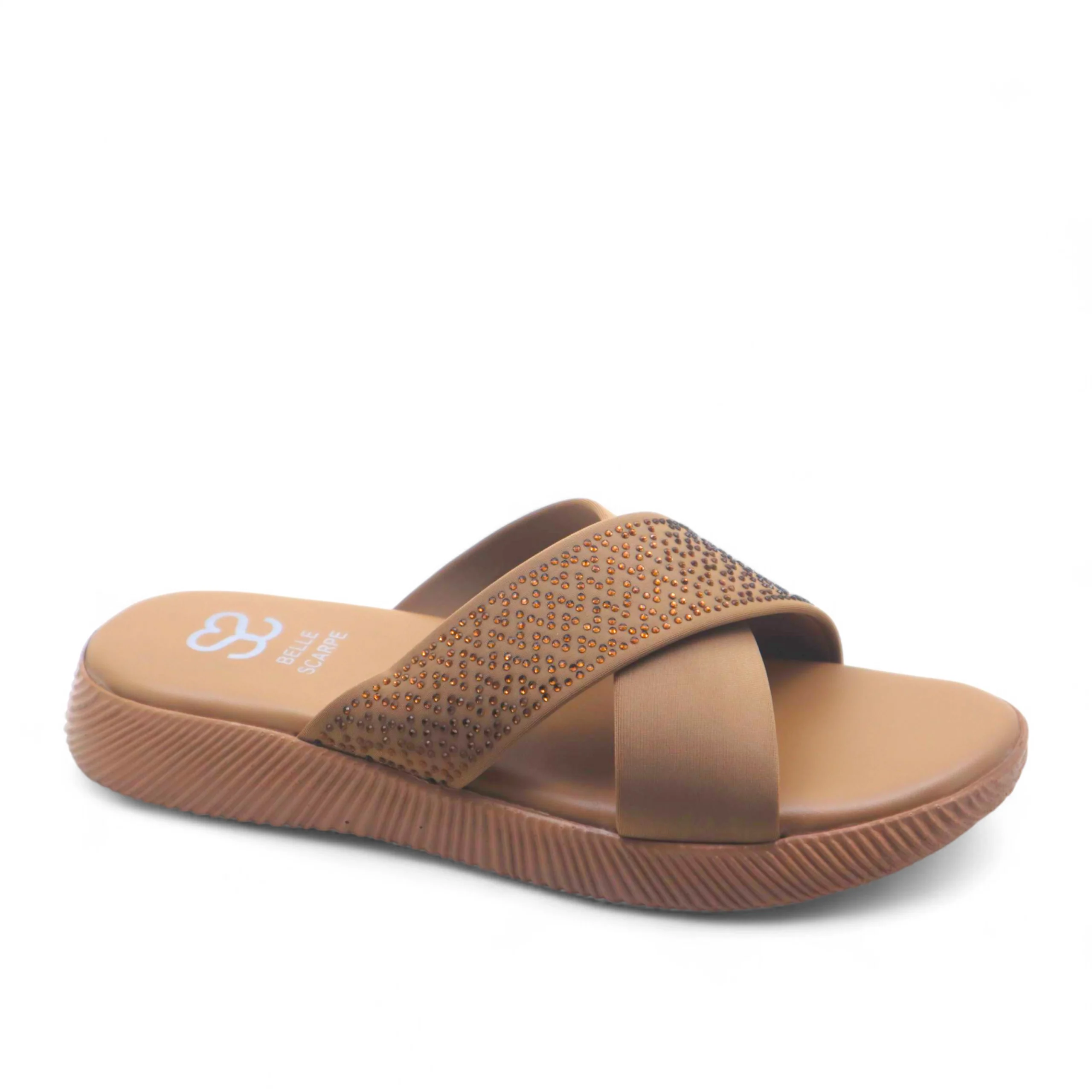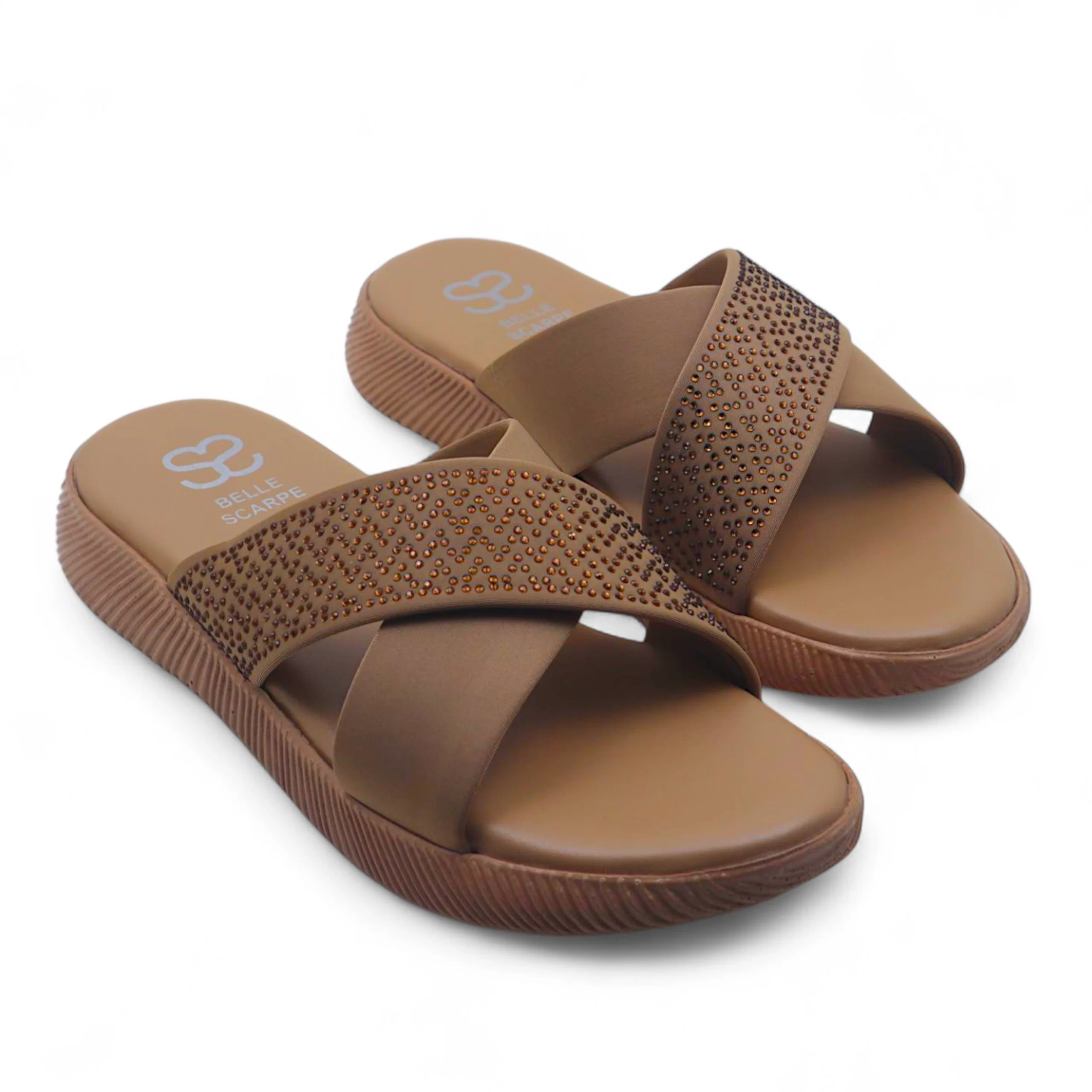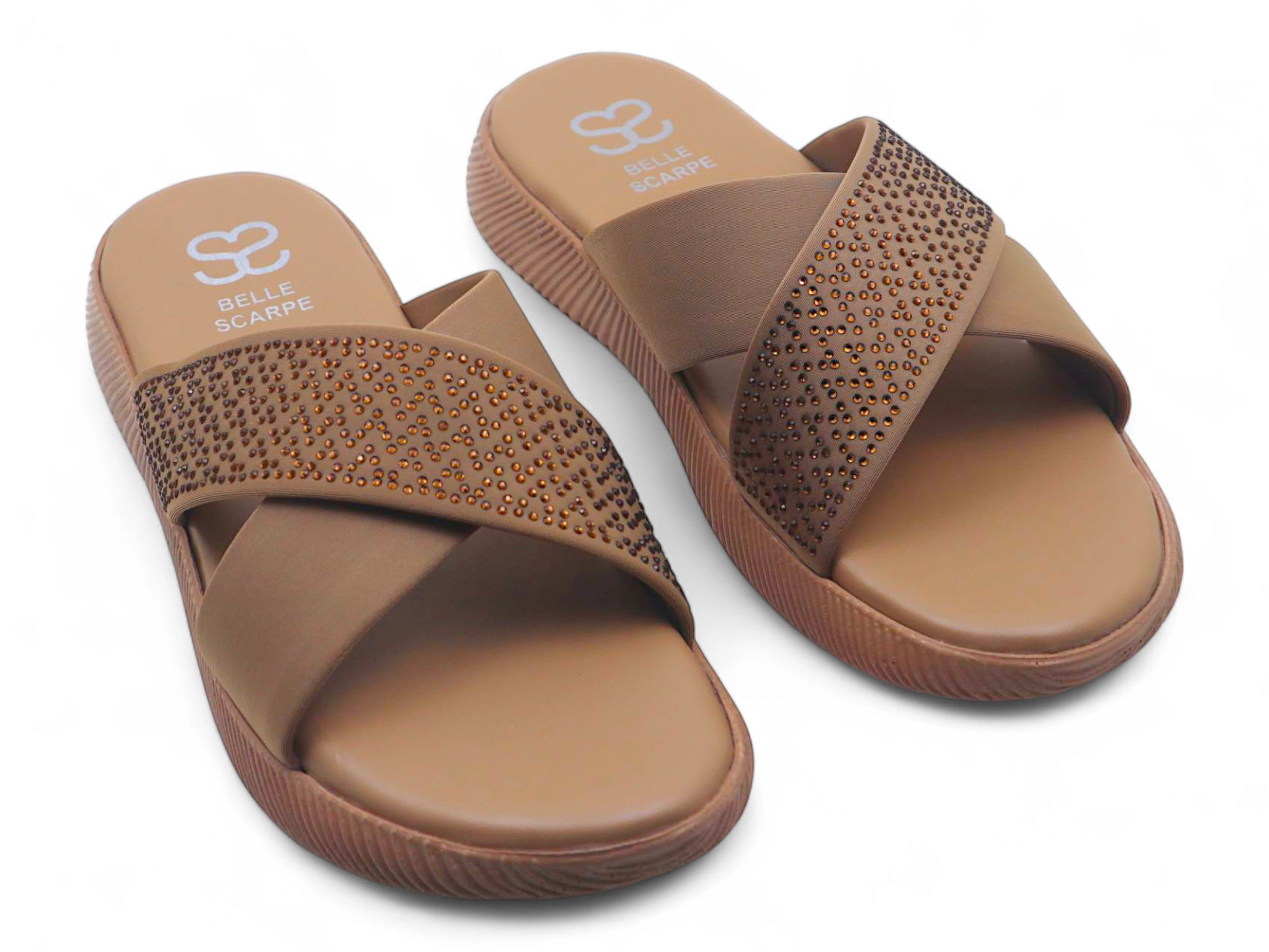 Introducing the Fawn Radiance, a timeless flat that pairs subtle elegance with modern comfort. Designed in a soft fawn hue, this chic sandal features two delicate straps that cross gracefully over the foot, adorned with shimmering stones that add just the right touch of sparkle. The cushioned sole ensures ease and comfort throughout the day, making it a perfect choice for both everyday wear and special occasions. Neutral yet eye-catching, the Fawn Radiance offers versatile sophistication that complements any outfit with effortless charm. Best served with • Festive Wear: Complements golds, creams, and neutral-toned traditional outfits. • Casual Chic: Pairs beautifully with denim, linen dresses, or flowy skirts. • Everyday Elegance: Ideal for adding polished grace to simple ensembles.
