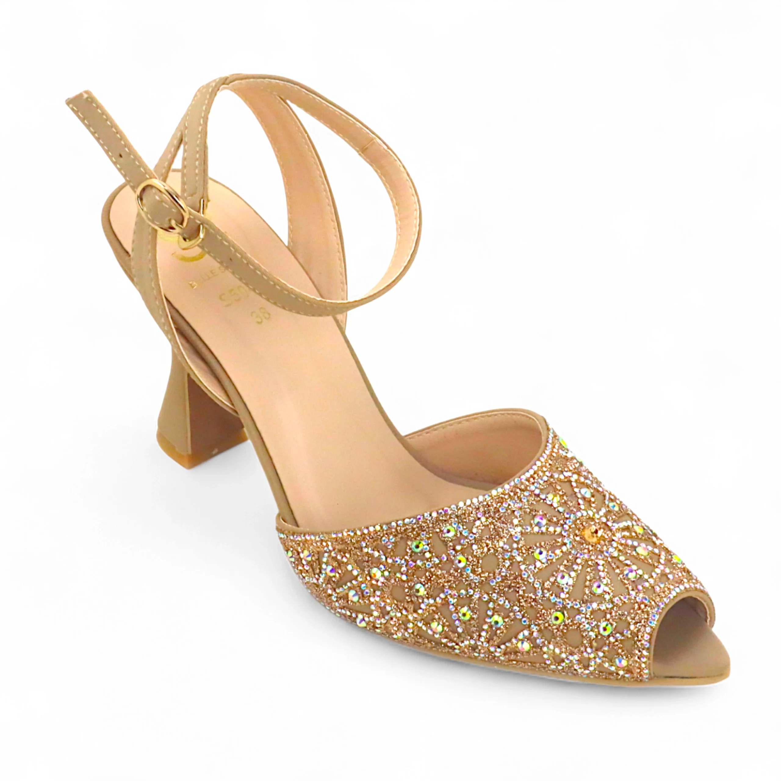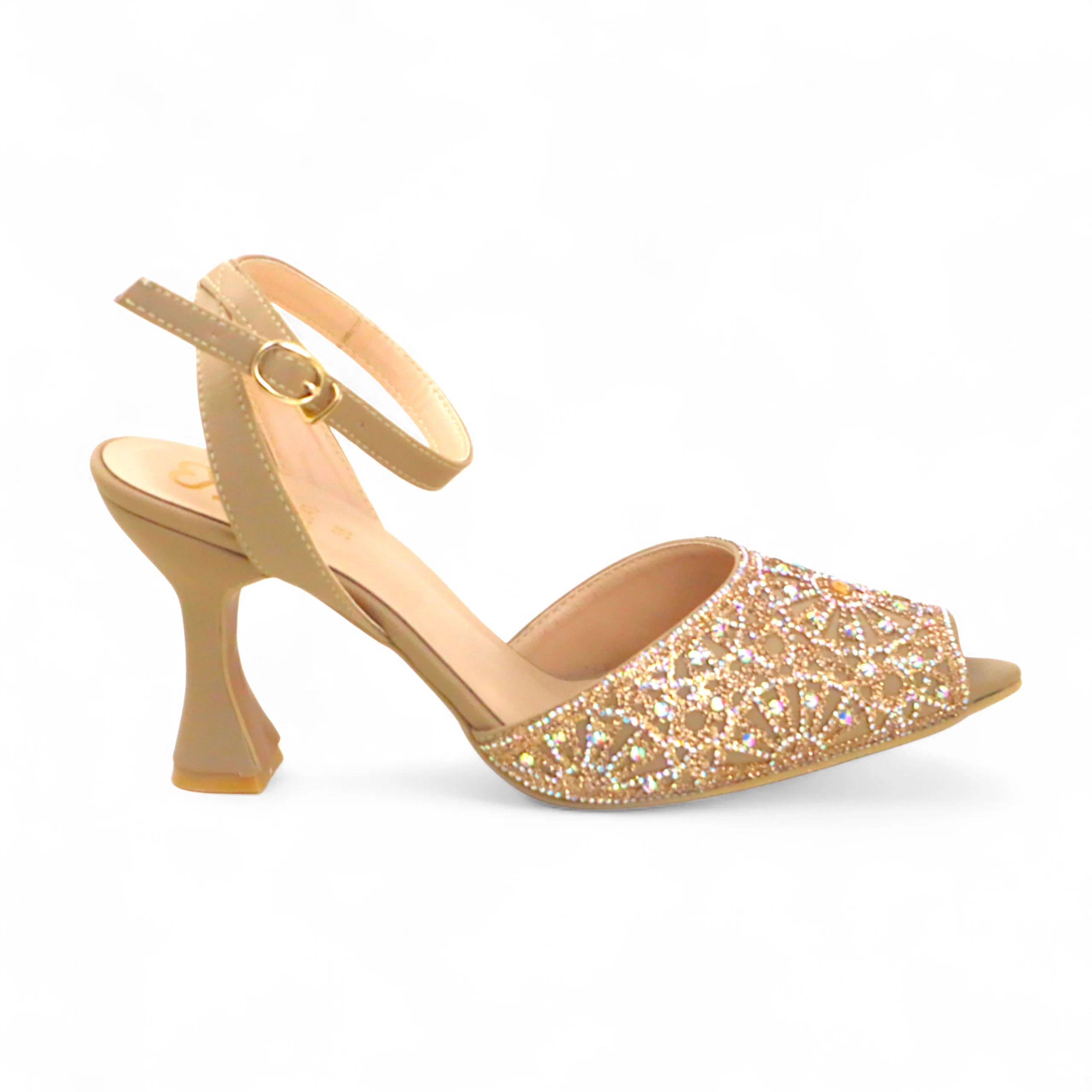Design: Peep-toe with floral beadwork and sparkling stone embellishment