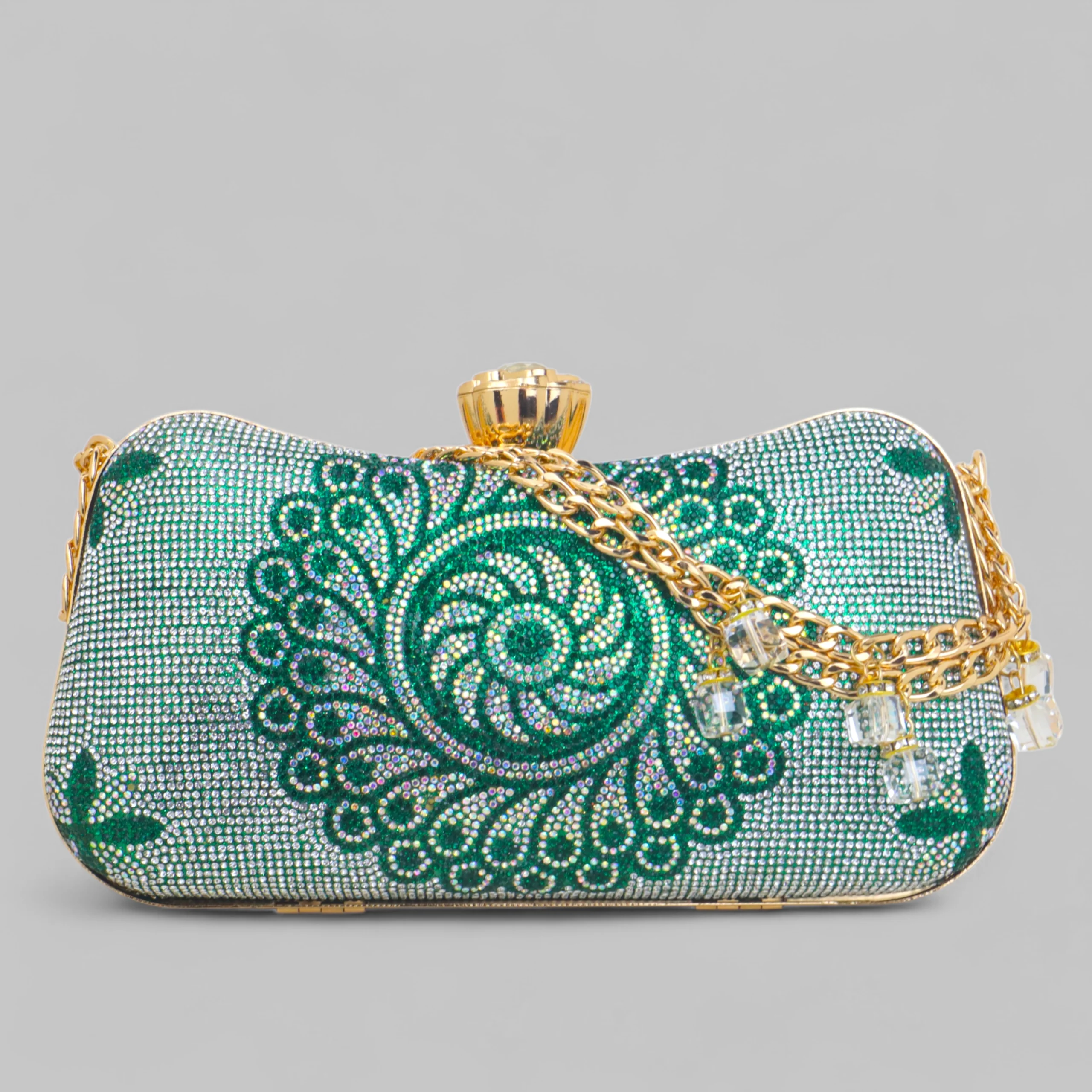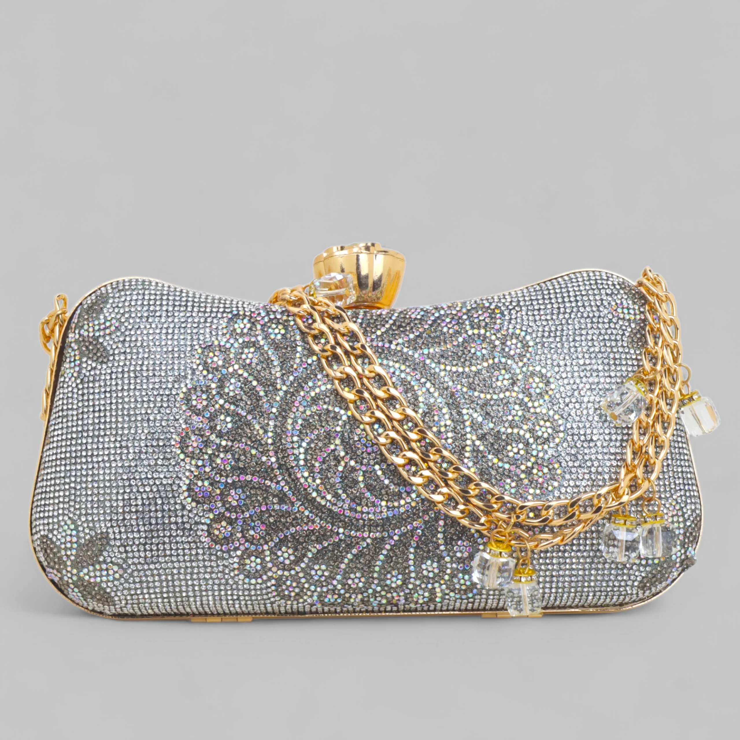 Add a touch of glamour to your look with this stunning crystal-embellished clutch, perfect for weddings, parties, and formal occasions.
