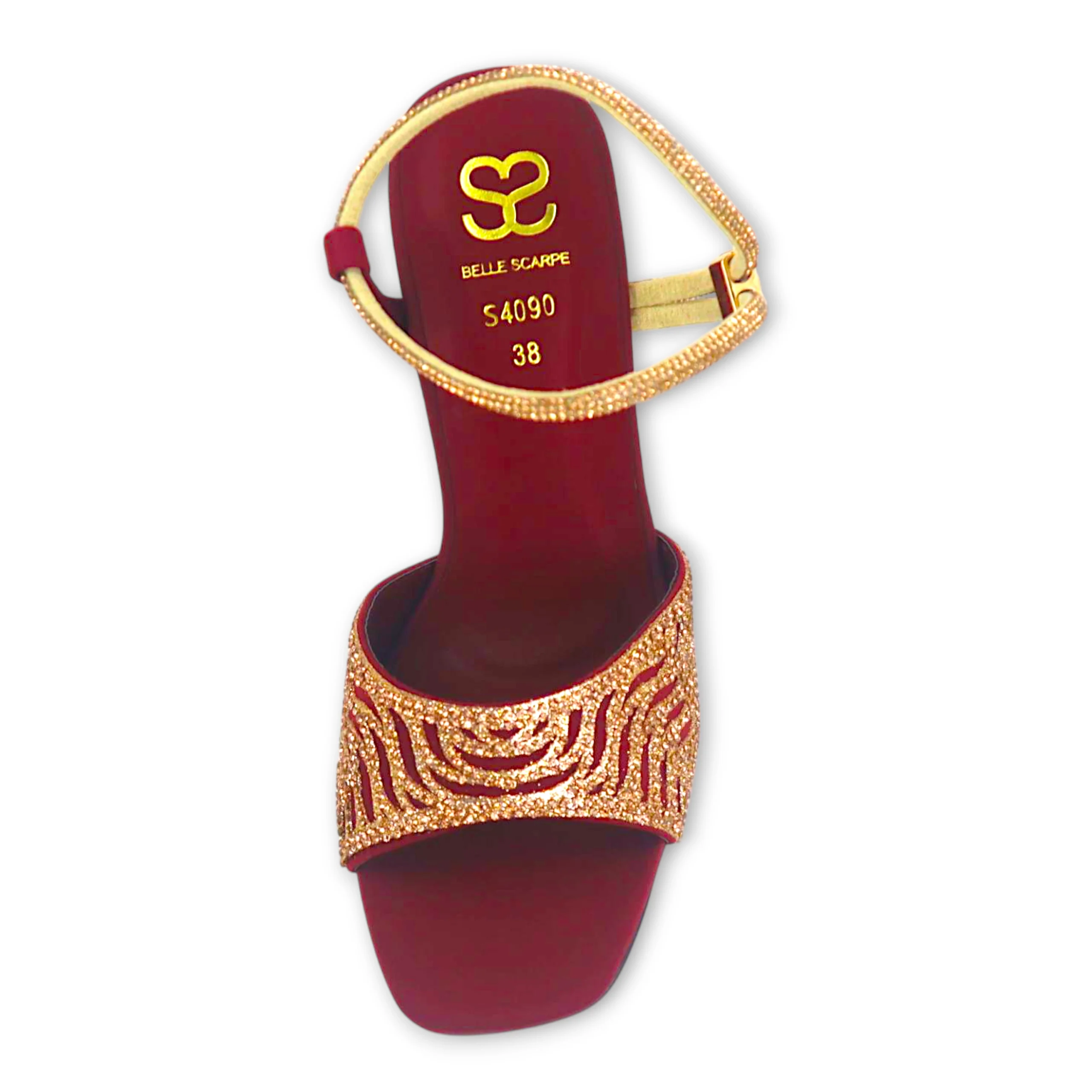 Introducing the Maroon Majesty, a rich deep-red 4-inch heel designed to make a statement with every step. The pointed toe is adorned with delicate golden work, adding a luxurious touch that elevates the entire silhouette. Its sleek finish and refined detailing make it the perfect blend of boldness and sophistication — ideal for celebrations, evening wear, and festive occasions.