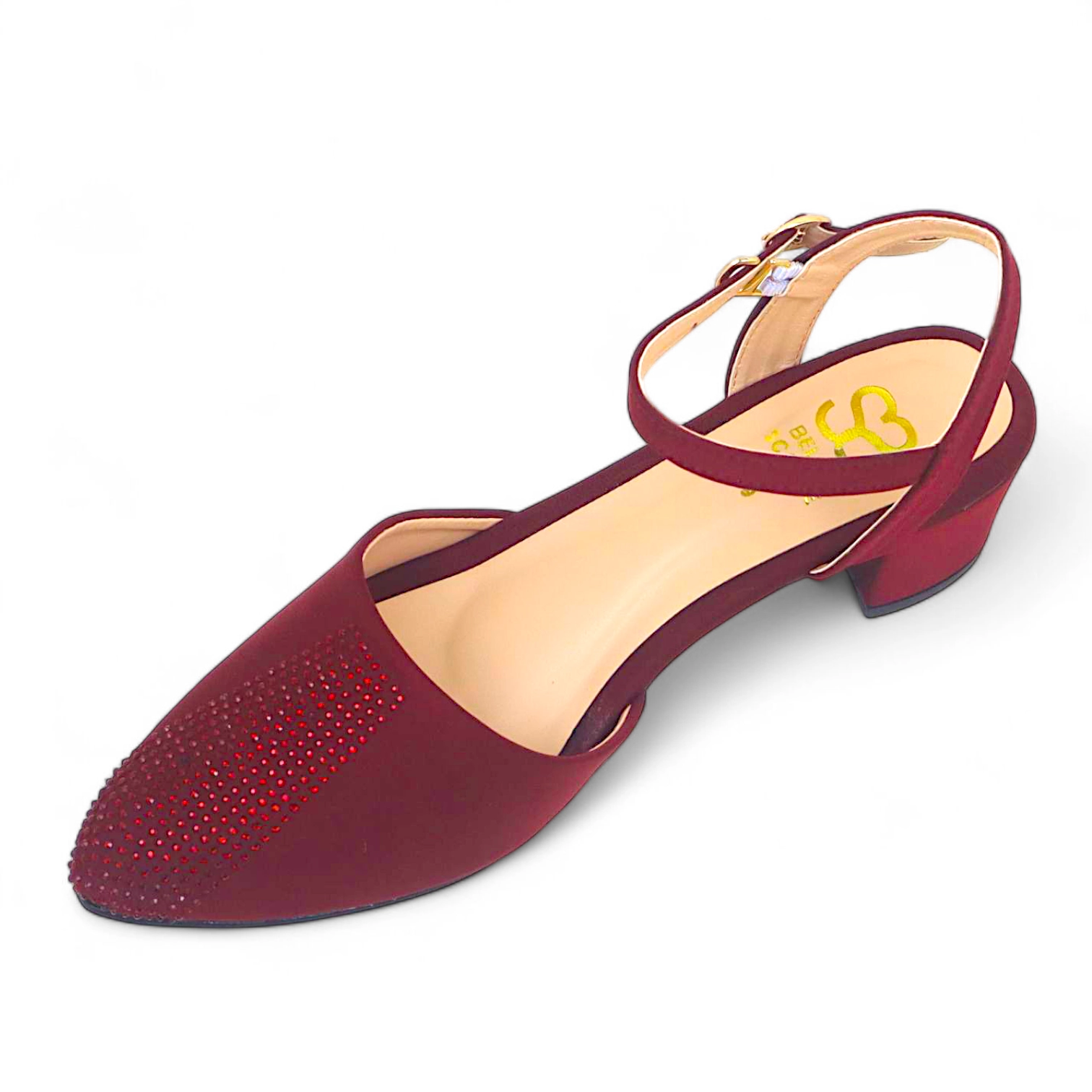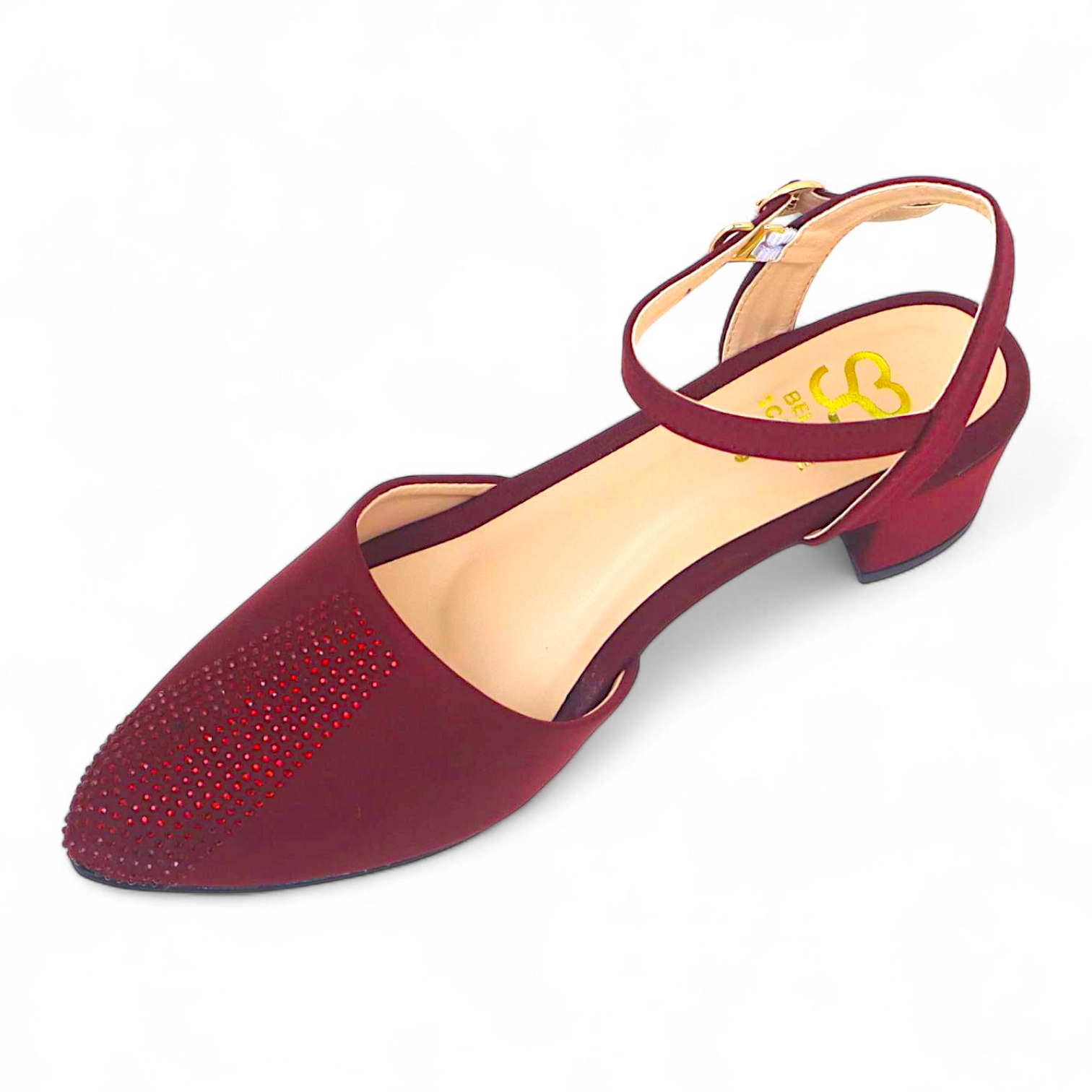Introducing the Merlot Gleam, a rich 2-inch heel that embodies warmth, depth, and refined sparkle. Designed in a deep burgundy hue and adorned with matching stones on the tip, this heel exudes understated luxury and timeless charm.