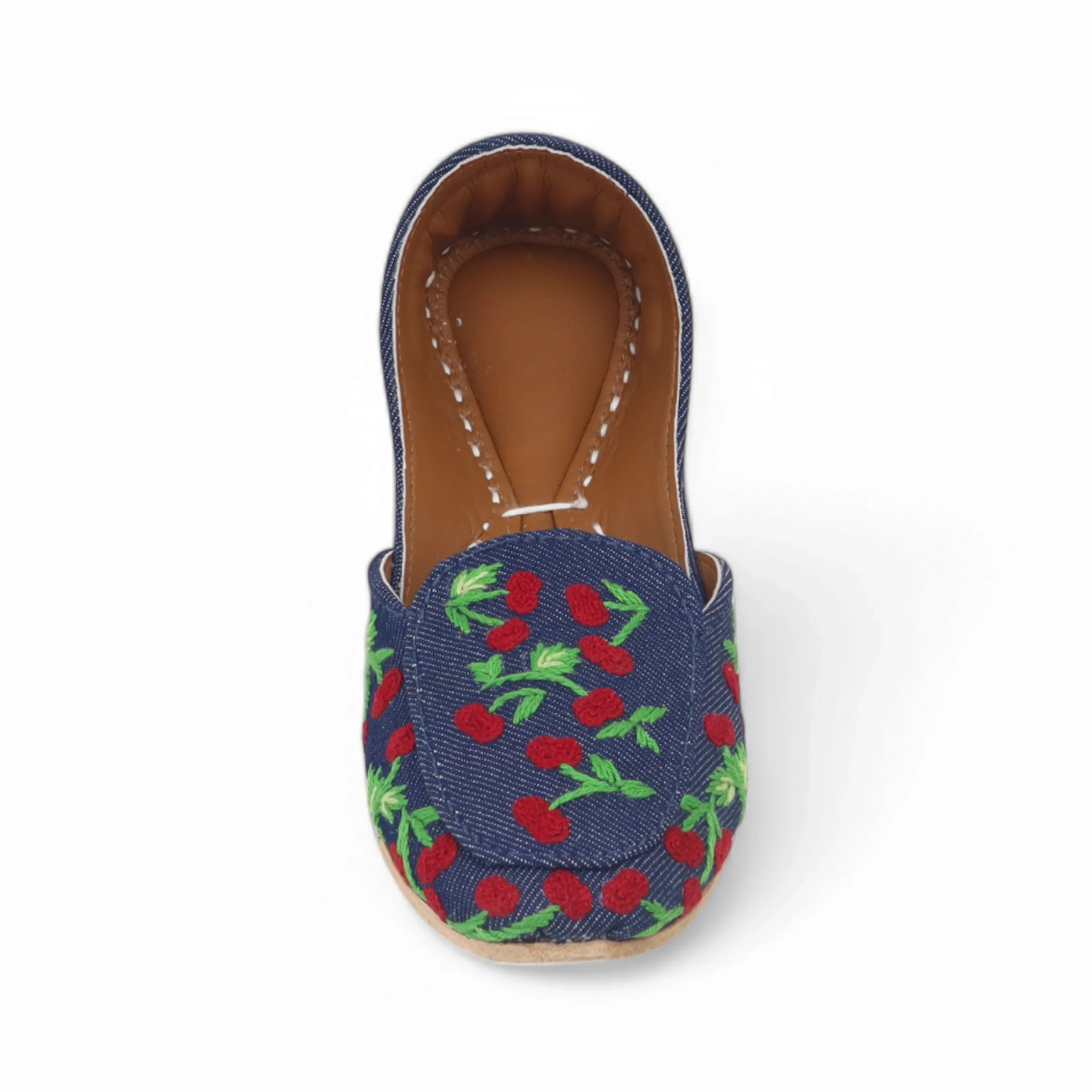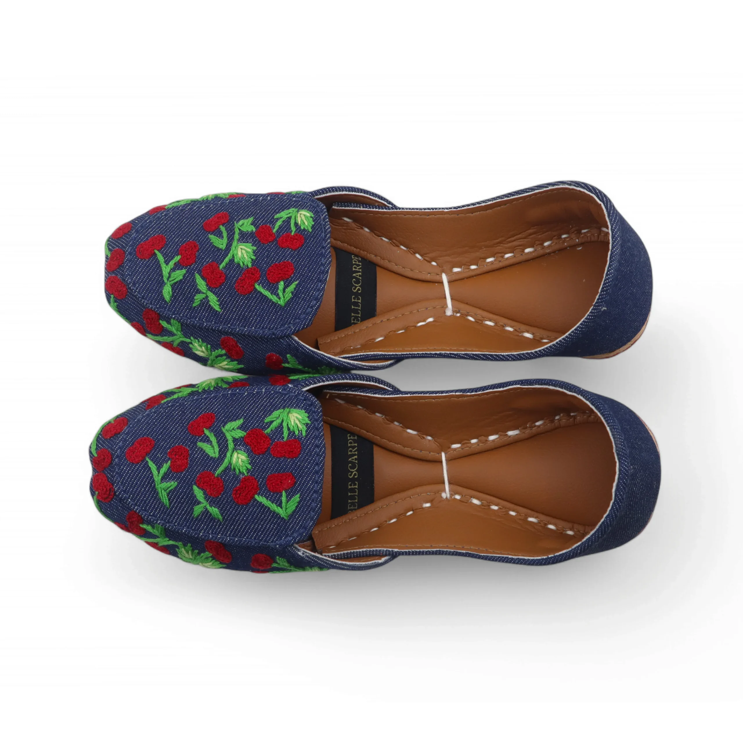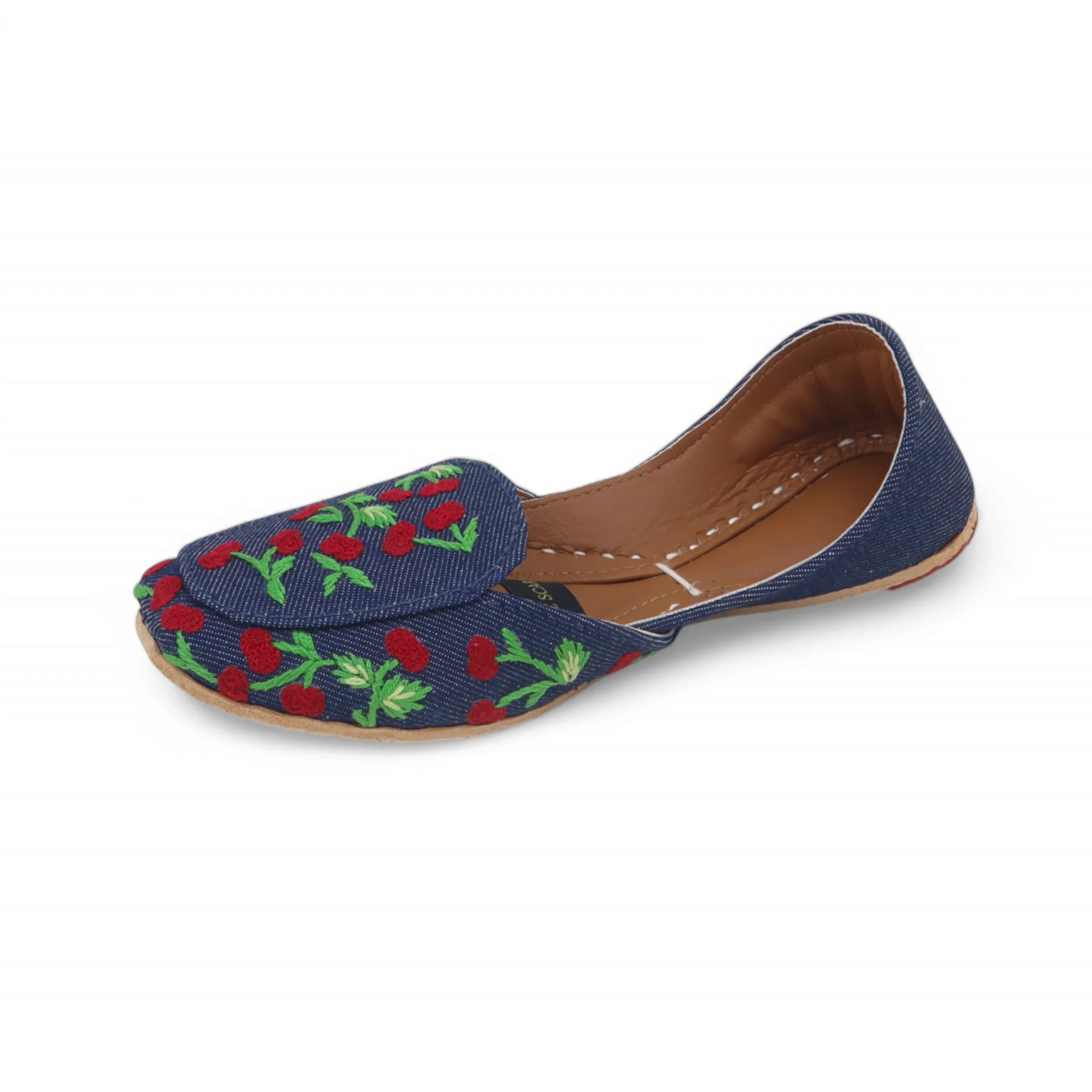 Indulge in the sweetness of Cheer Cherry, a captivating Loafer that combines stylish sophistication with playful charm. The rich blue denim upper is adorned with vibrant cherry embroidery, creating a visually striking effect that's sure to turn heads. With its sleek design, meticulous stitching, and double-padded cushioning, Cheer Cherry offers a comfortable and refined walking experience. Perfect for adding a pop of personality to formal or casual outfits, Cheer Cherry is the ideal choice for those who dare to be different. Whether you're dressing up for a special occasion or dressing down for a relaxed gathering, Cheer Cherry is sure to make a statement. Its unique blend of style, comfort, and whimsy makes it a must-have addition to any shoe collection.