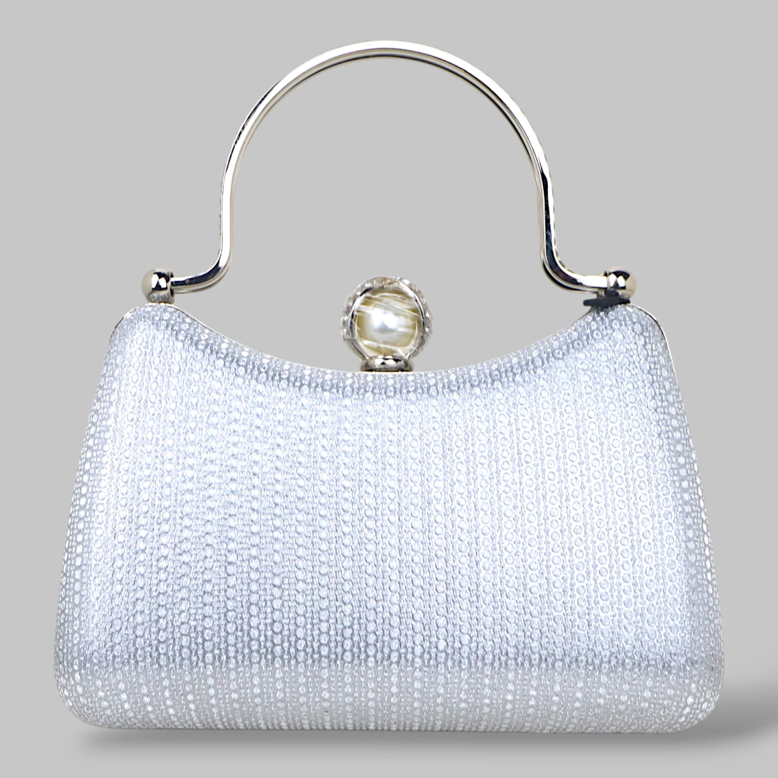 The standout pearl-inspired clasp gives it a regal touch, while the sturdy metal top handle ensures both style and comfort. Its structured silhouette keeps your essentials secure, making it ideal for weddings, festive occasions, and formal evenings.