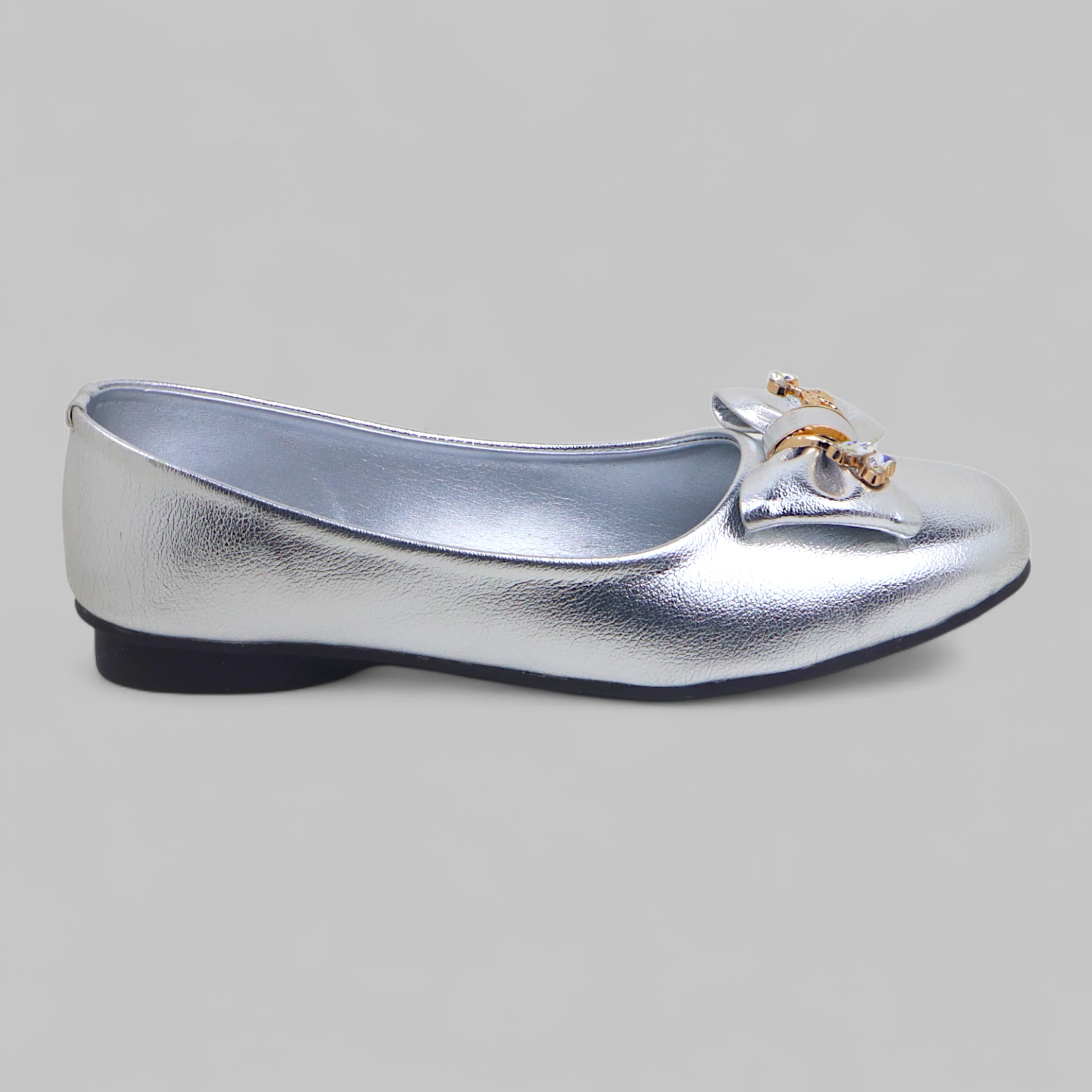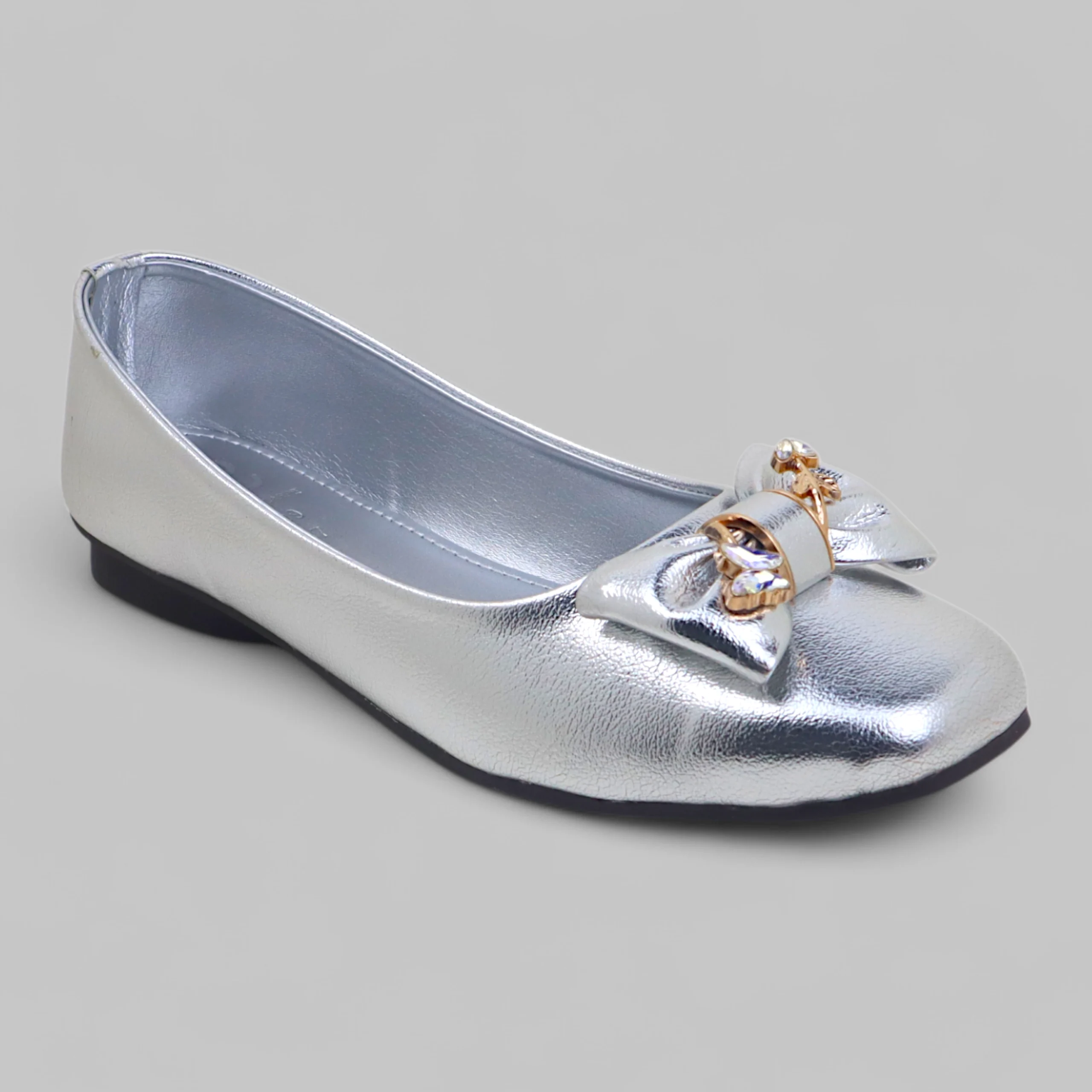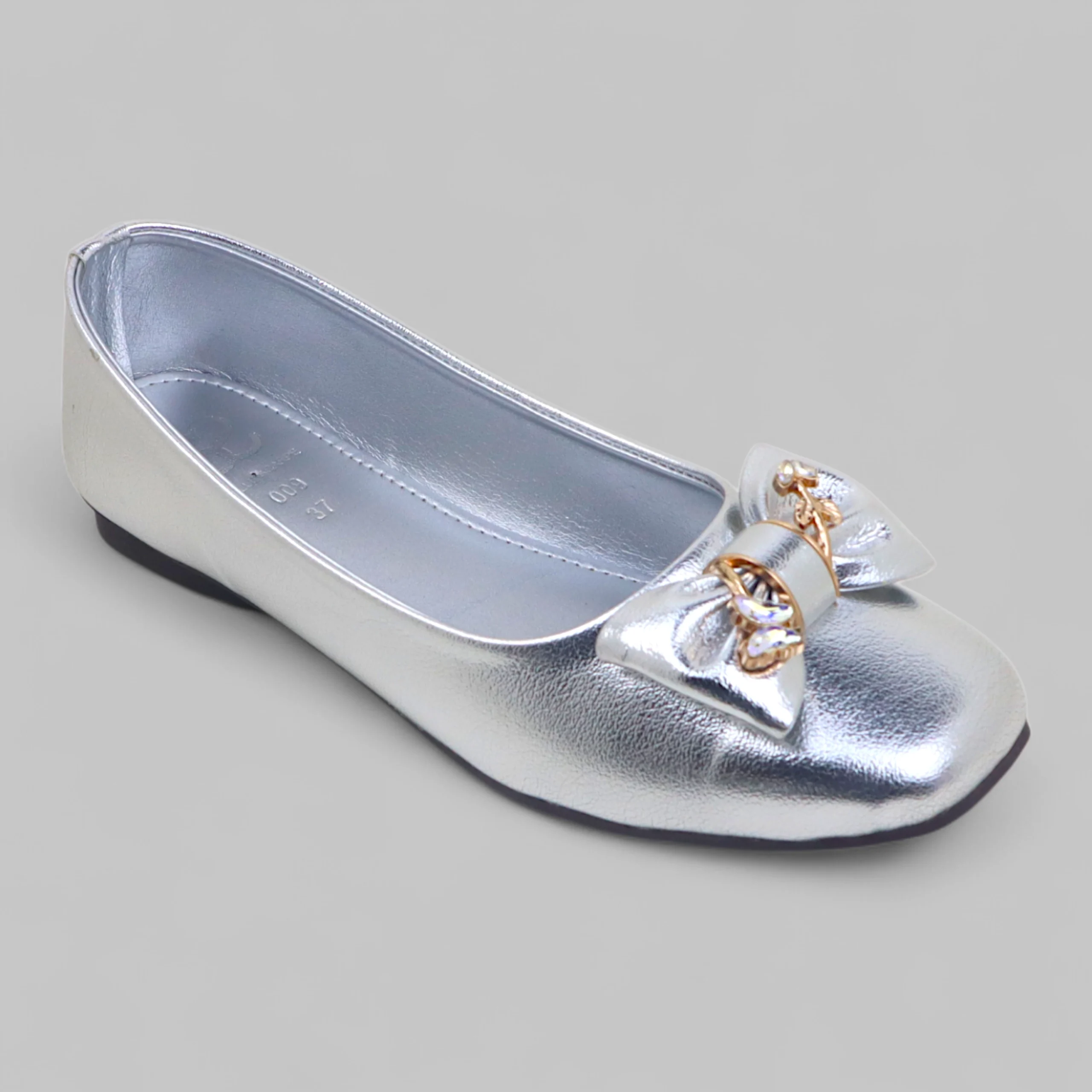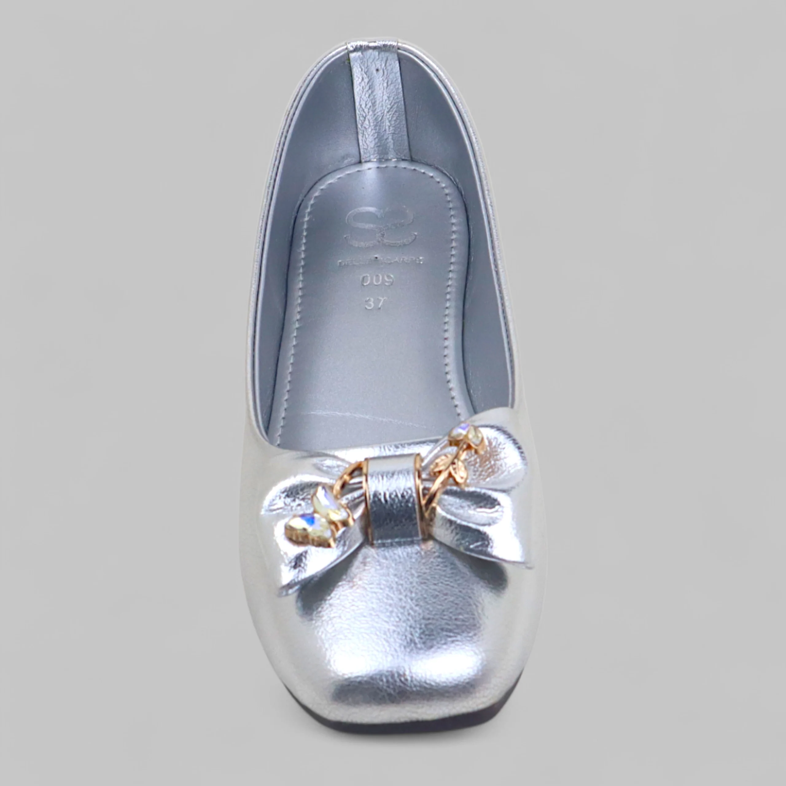 Introducing the Silver Bow Court Shoe, a timeless classic elevated with a graceful statement detail. Crafted in a luminous silver tone, this court shoe features a sleek closed-toe silhouette adorned with a delicate bow on the upper, adding a soft, feminine touch to its modern metallic finish. Designed for comfort and polish, it’s perfect for formal events, festive occasions, or refined everyday wear.