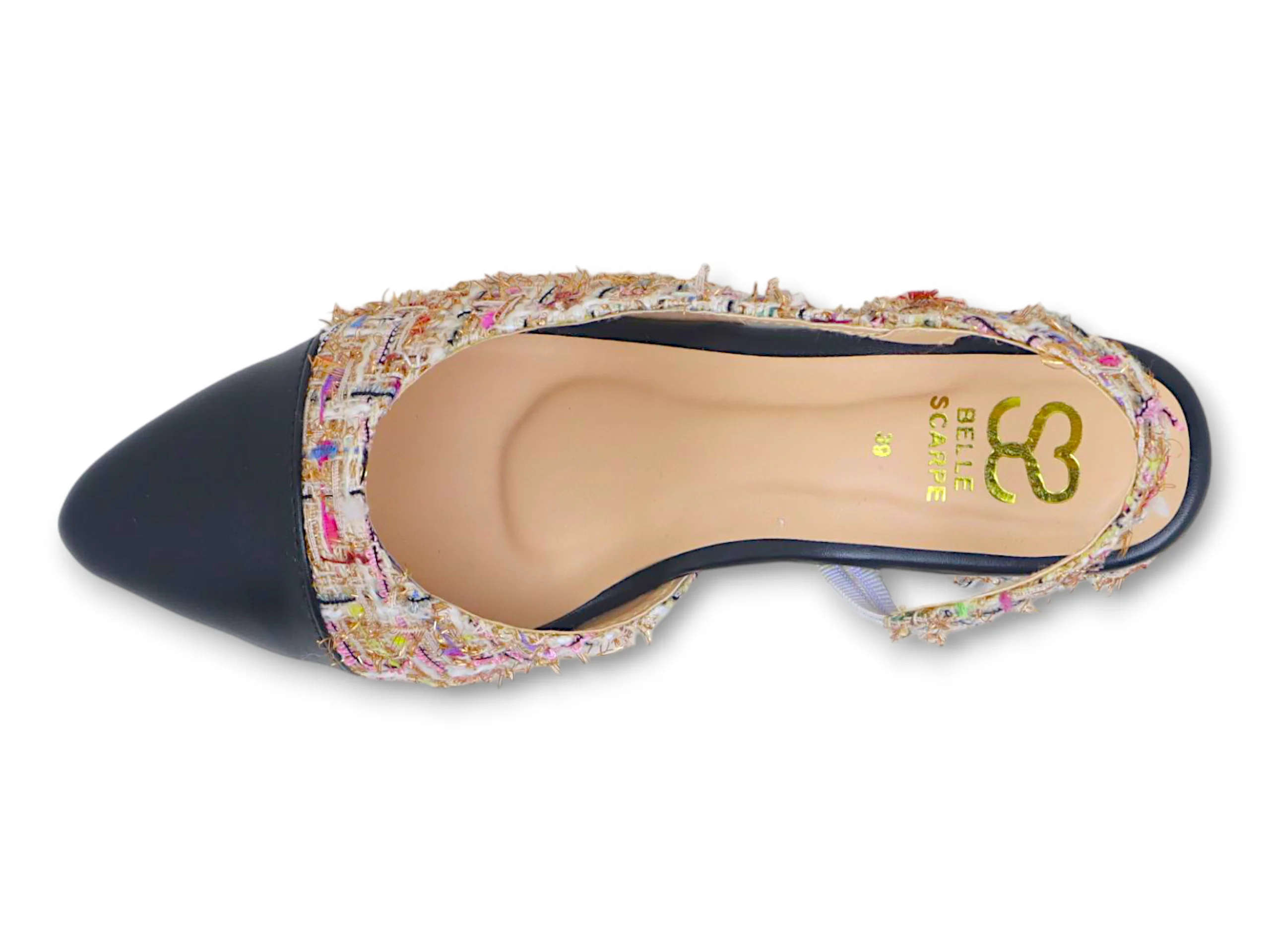 Introducing the Twilight Bloom, a playful yet polished 2-inch heel that brings color and contrast together in perfect harmony. Designed with a vibrant multicolor body and accented by a sleek black-tipped finish, this heel offers a bold statement while retaining a touch of refined sophistication.